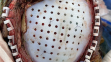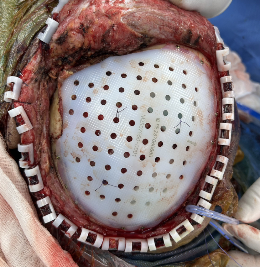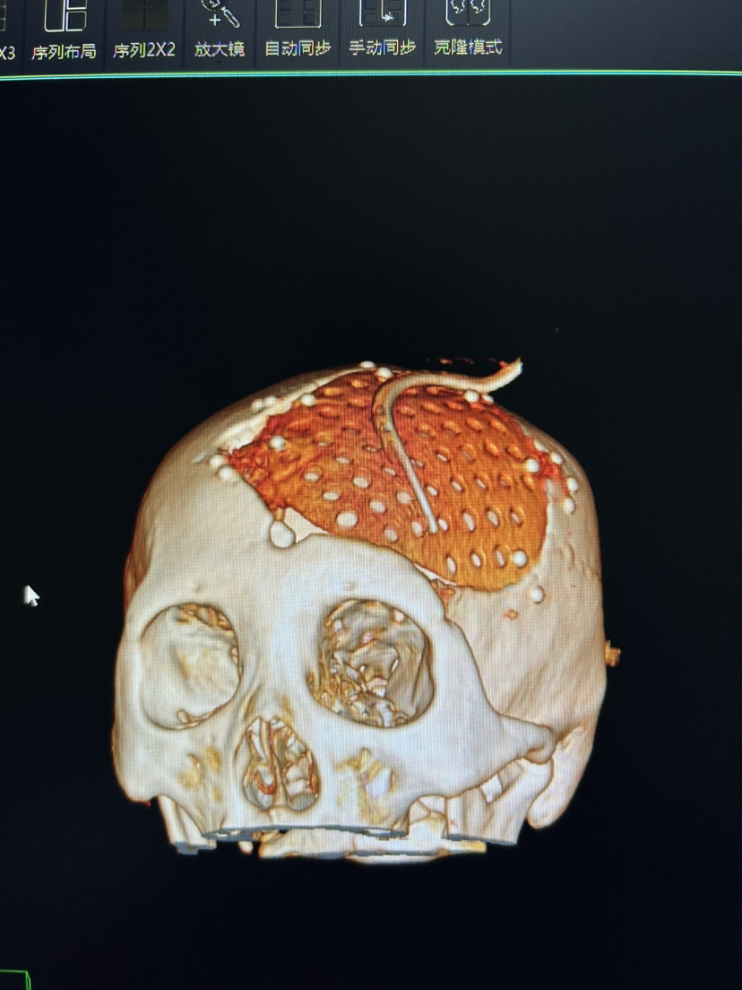 除了PEEK 钛网 本次用了超高分子量聚乙烯 颅骨修补