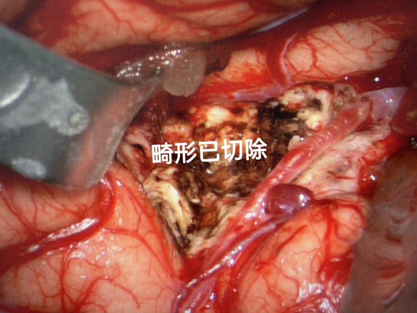 畸形团位于后颞横回,全切