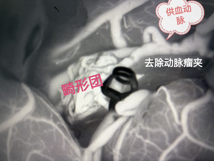 去除供血动脉阻断夹,畸形团迅速显影