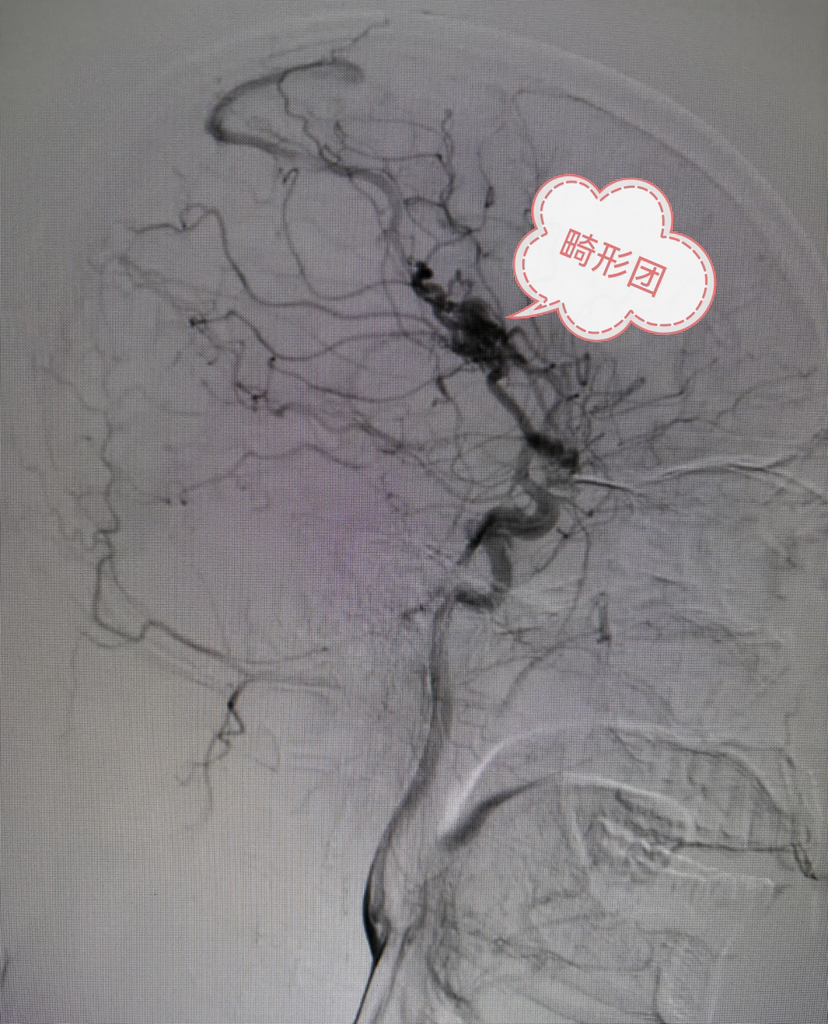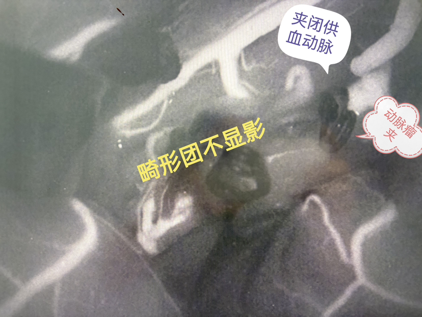 去除供血动脉阻断夹,畸形团显影