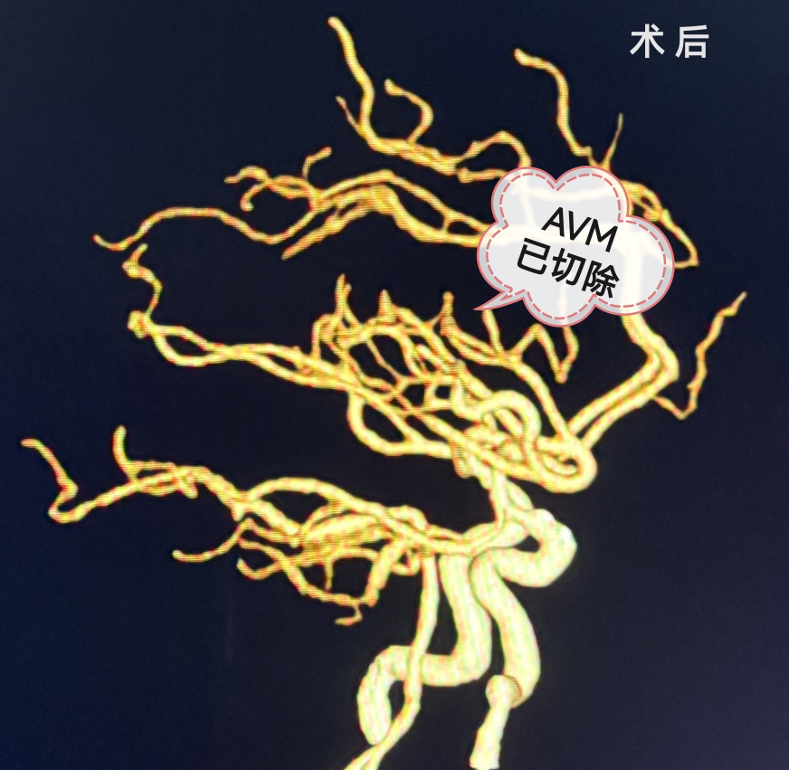 术后麻醉清醒,即刻复查CTA示:畸形切除完全,血肿清除彻底,安全返回病房!