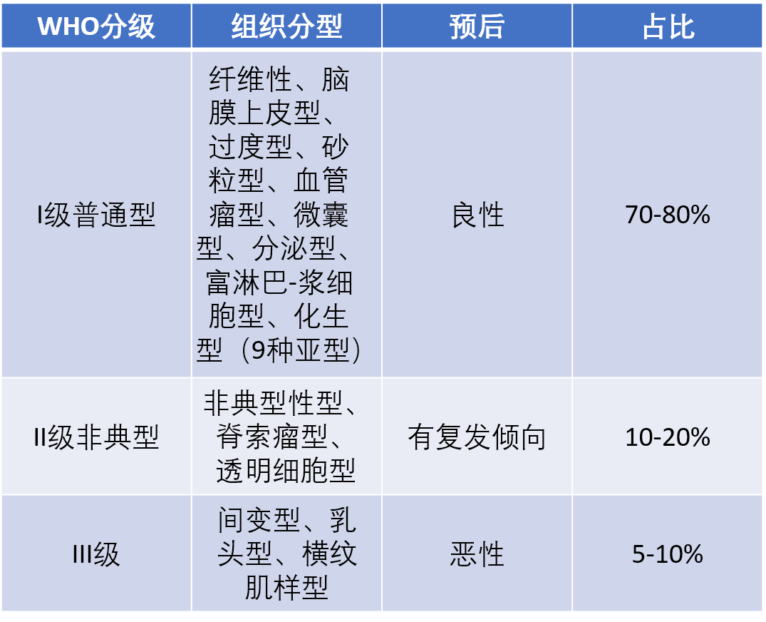 脑膜瘤分类(根据2016年中枢神经系统肿瘤分类)
