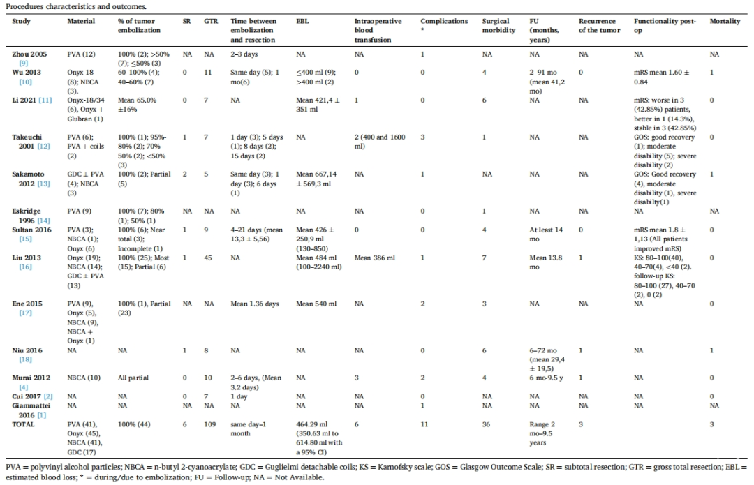 来自巴西马克斯普朗克大学中心的Lucca B. Palavani评估了术前栓塞治疗HB的有效性和安全性,结果于2023年10月在线发表在《Journal of Clinical Neuroscience》上。