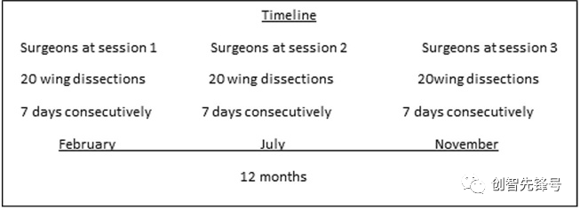 两名无3D外视数字手术显微镜操作经验的神经外科医师在12个月的时间内,分别于2月、7月和11月进行相同的测试任务。在测试任务期间,两名参与者均在实验室使用外视镜,并在临床手术中进行日常辅助。每个测试部分在一周内重复相同的任务10次。共完成60项测试任务,每项30项。测试任务包括使用3D外视数字手术显微镜解剖和获取鸡翅第二段的尺动脉和桡动脉。