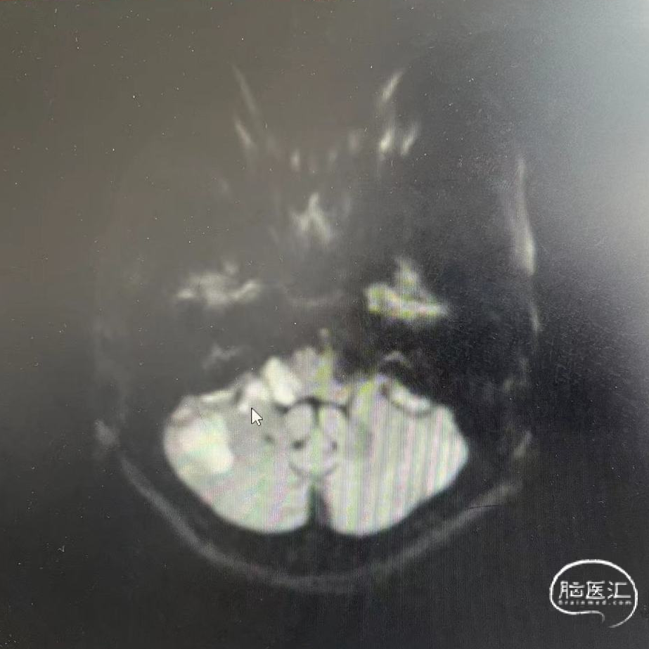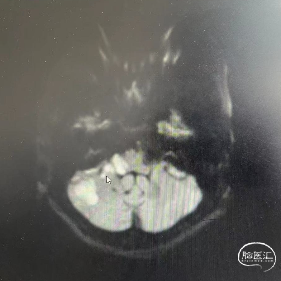 头颅MRI示:小脑半球,桥小脑角急性梗死。