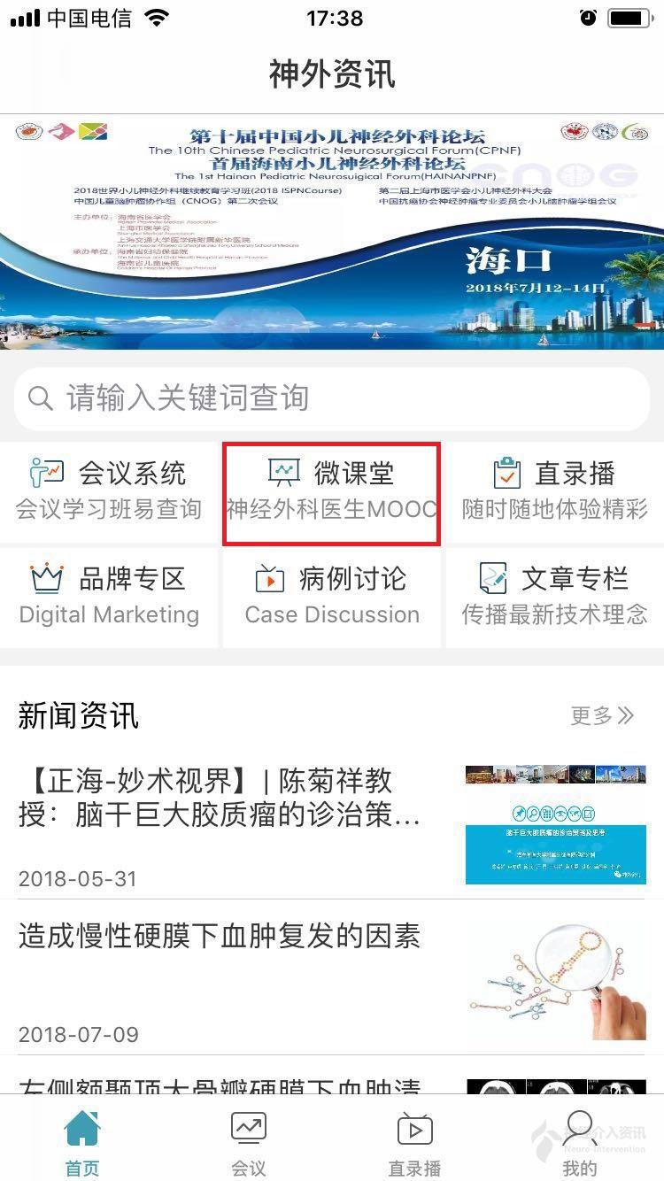 答:下载“神外资讯”APP,在APP首页上可见微课堂入口,如图。