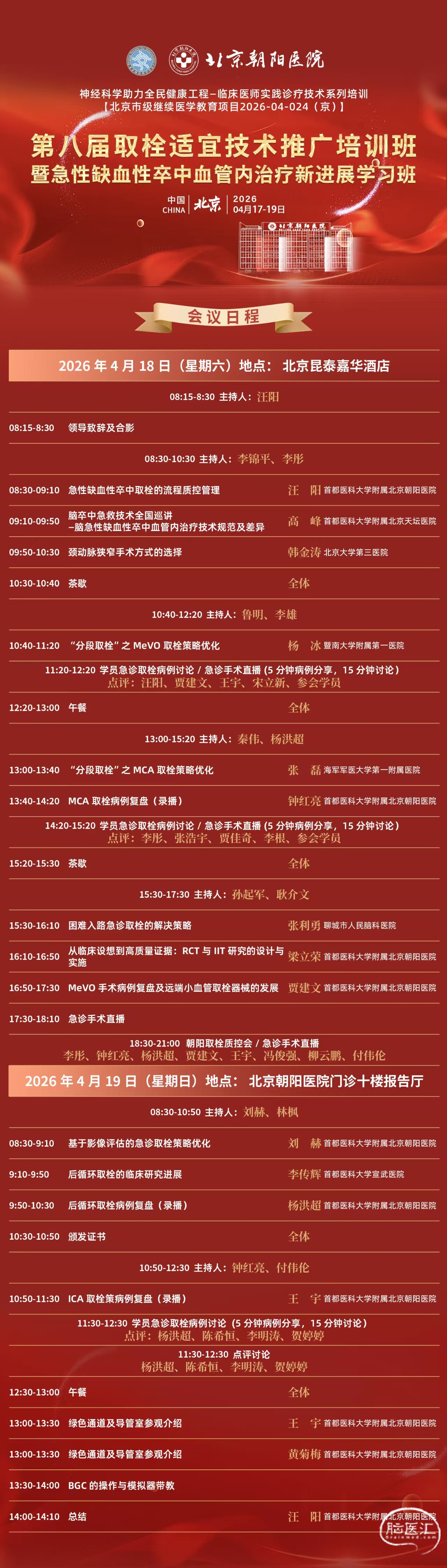 脑医汇首页 会议 第八届取栓适宜技术推广培训班暨急性缺血性卒中血管内治疗新进展学习班