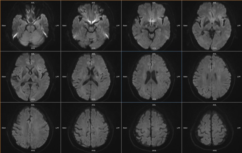PWI显示:右侧颞叶、额叶下部、半卵圆区、顶叶PTT延长。