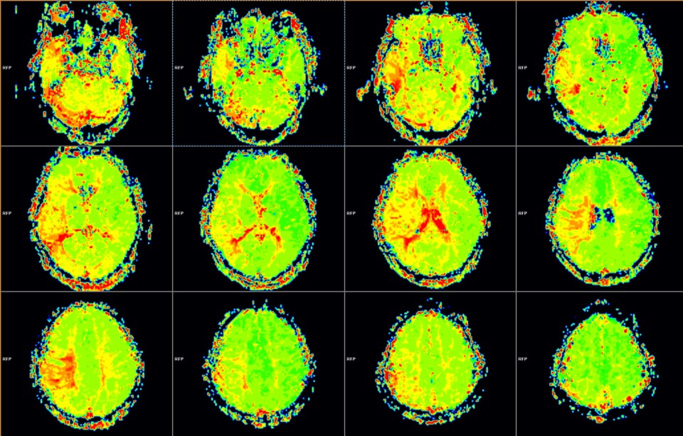 PWI显示:右侧颞叶、半卵圆区、顶下小叶MTT延长。