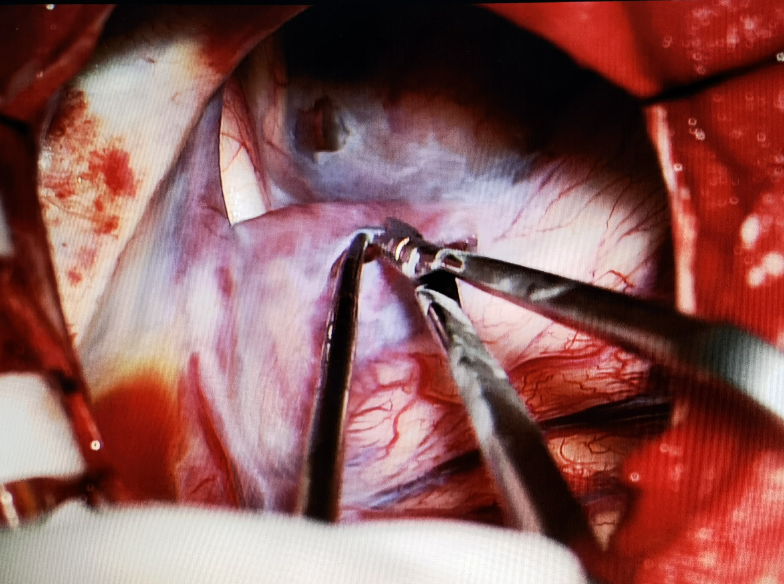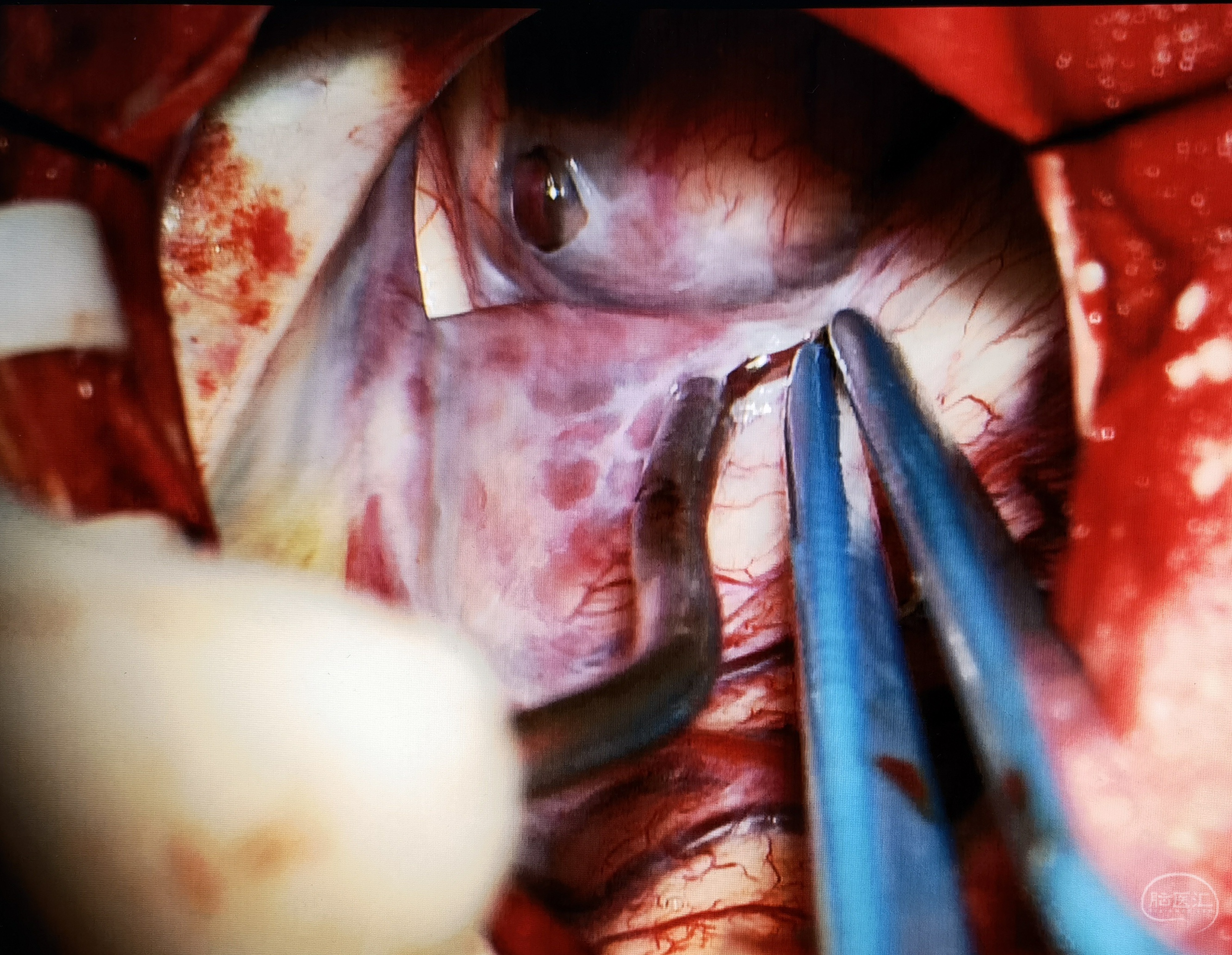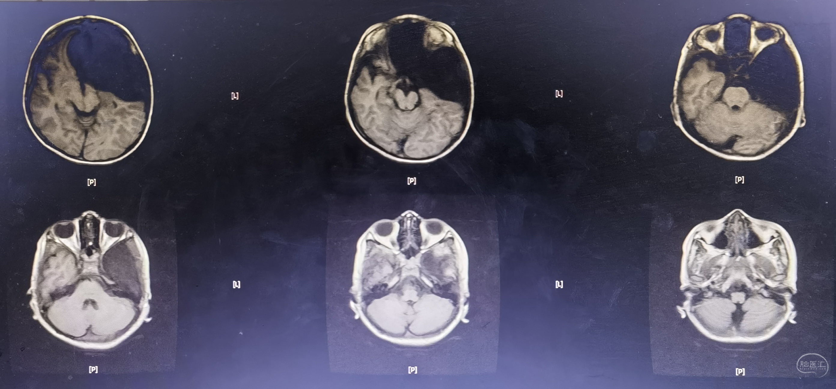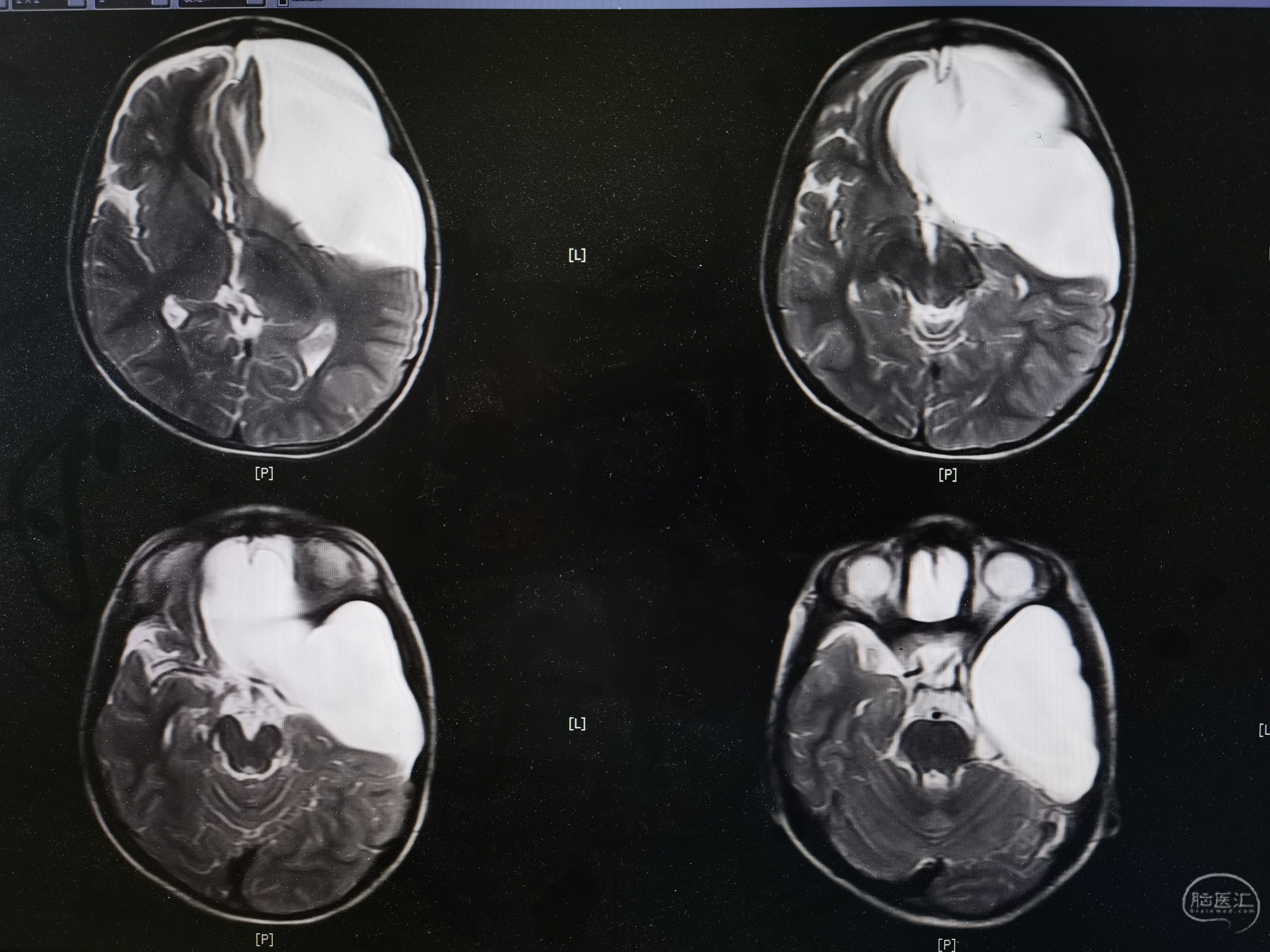 考虑到患儿囊肿体积巨大,占位效应明显,向患儿家属交代病情及手术风险后,行小骨窗开颅蛛网膜囊肿-脑池造瘘术,术中打通侧裂池、颈动脉池、基底池,多处造瘘,瘘口大小为1-1.5cm,并切除部分囊壁。术后患儿无新发症状,病情恢复良好,定期复查随访。