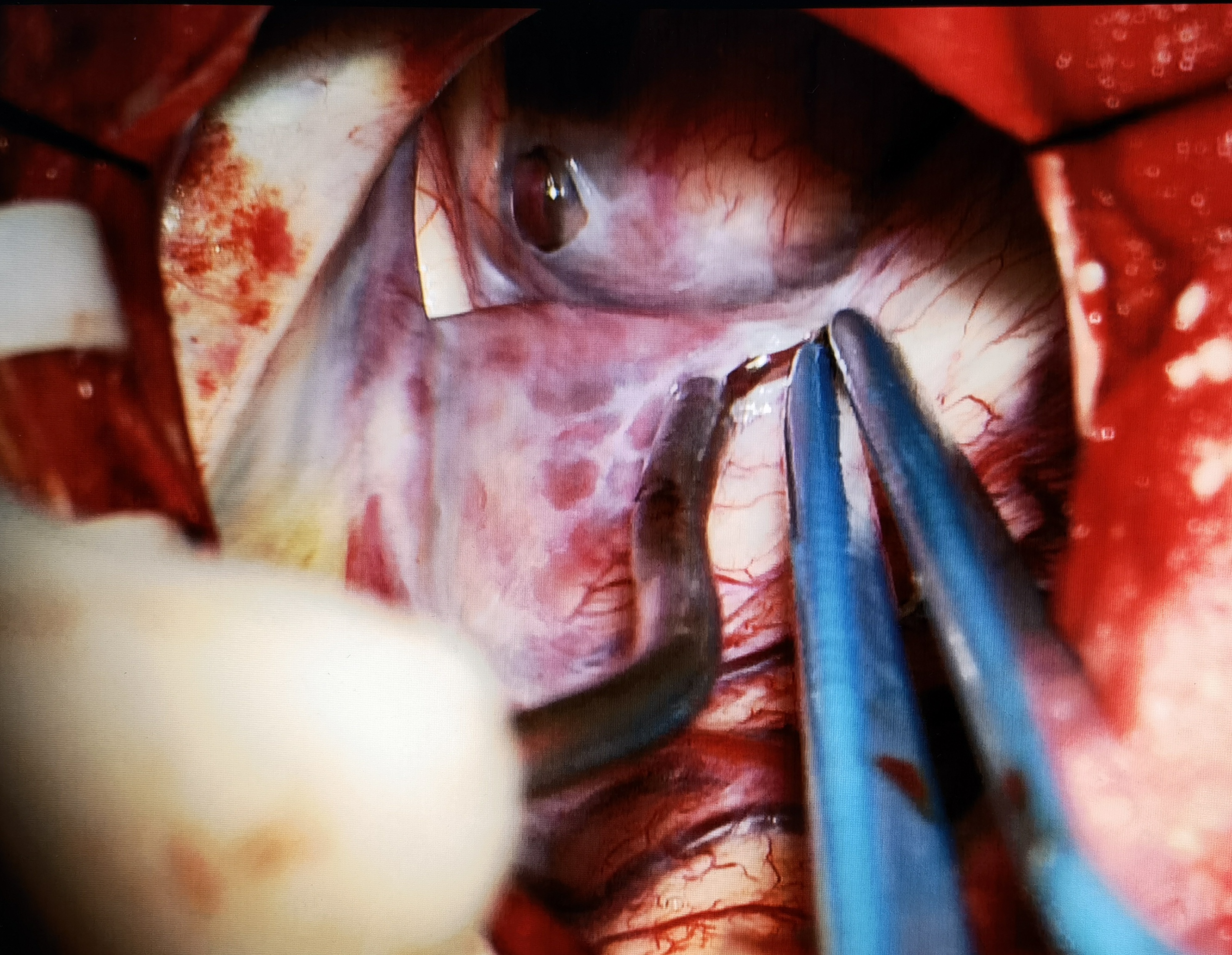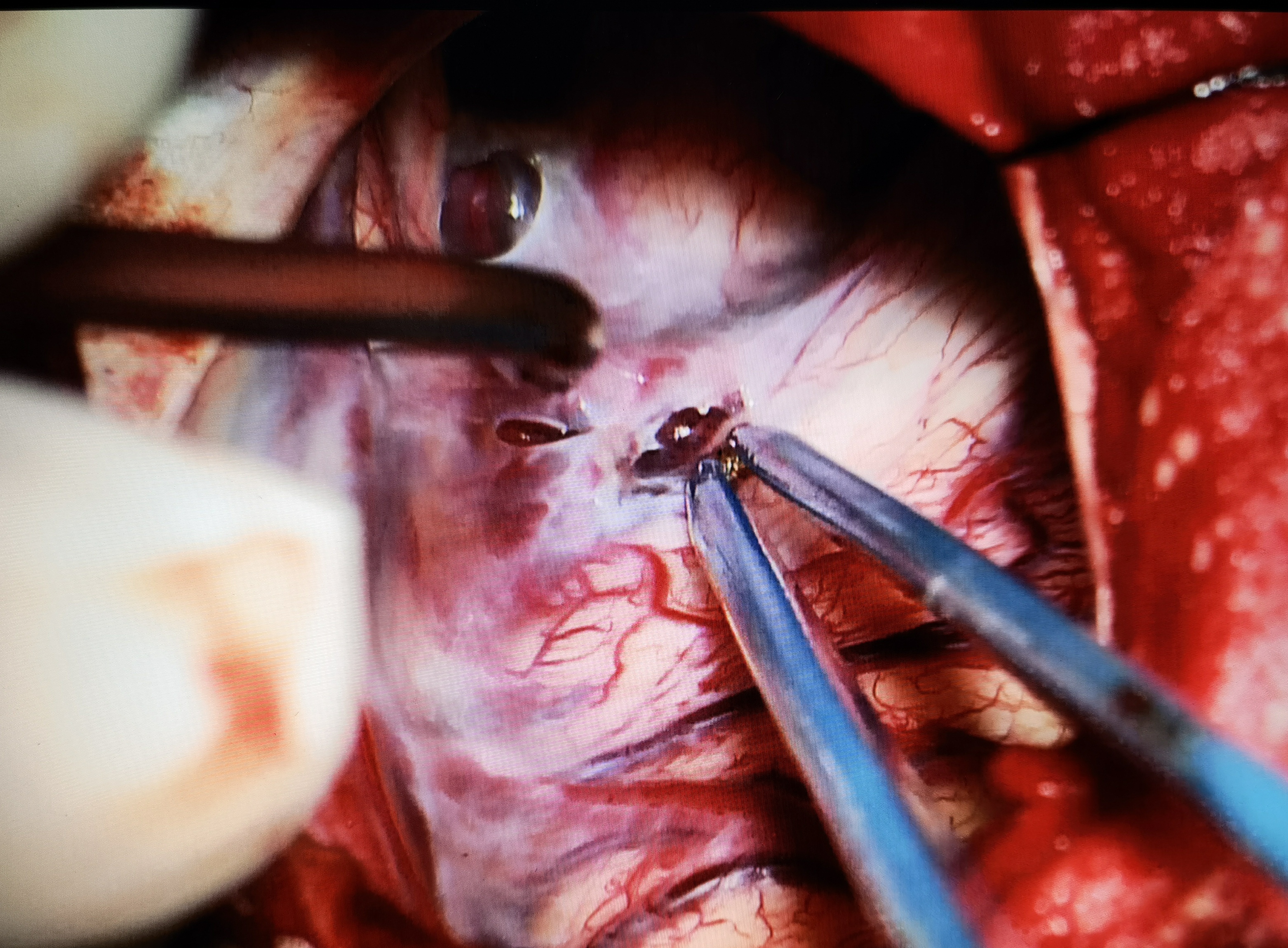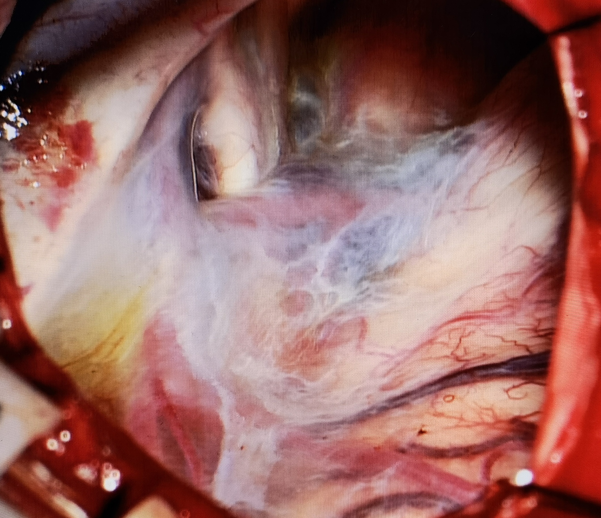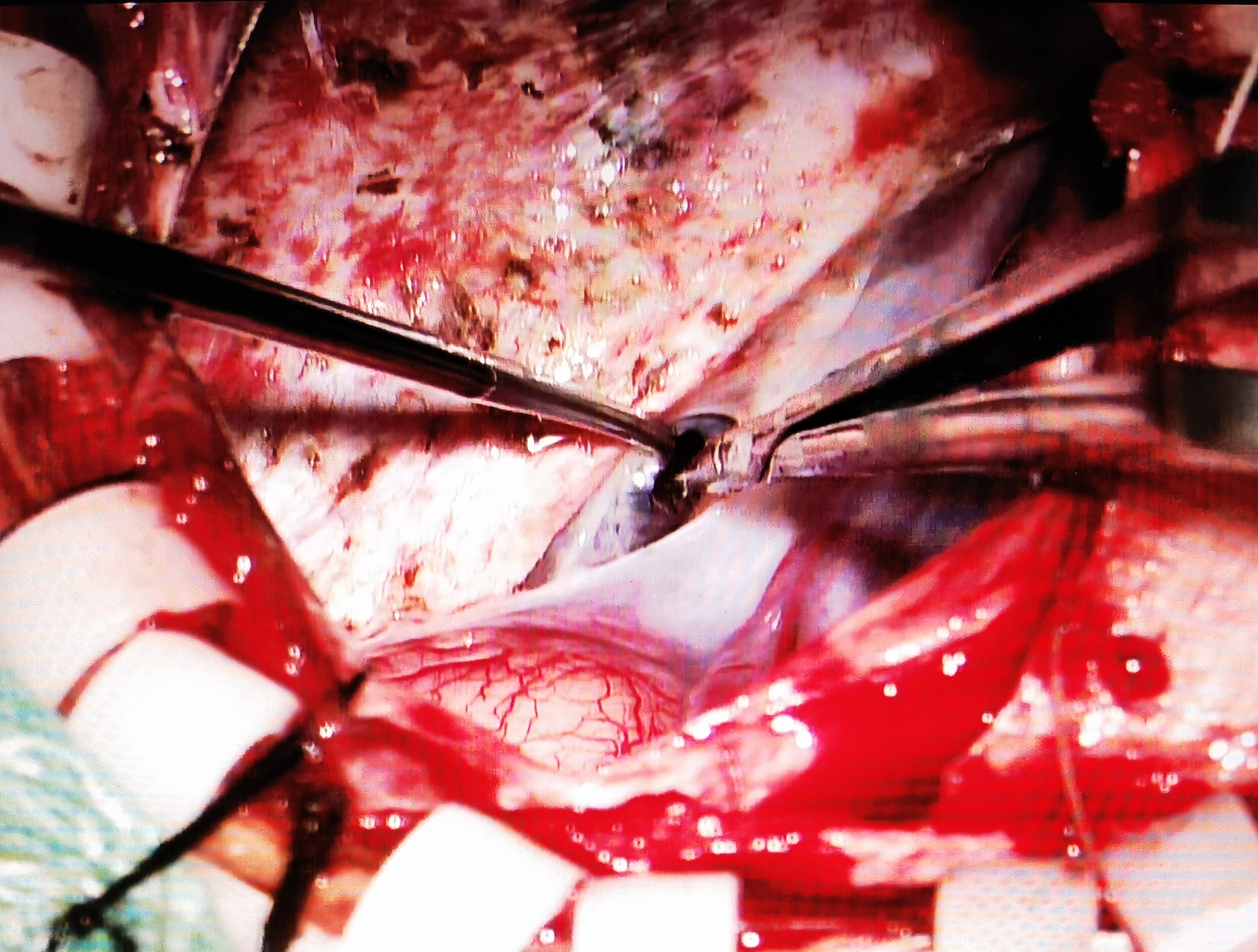 考虑到患儿囊肿体积巨大,占位效应明显,向患儿家属交代病情及手术风险后,行小骨窗开颅蛛网膜囊肿-脑池造瘘术,术中打通侧裂池、颈动脉池、基底池,多处造瘘,瘘口大小为1-1.5cm,并切除部分囊壁。术后患儿无新发症状,病情恢复良好,定期复查随访。