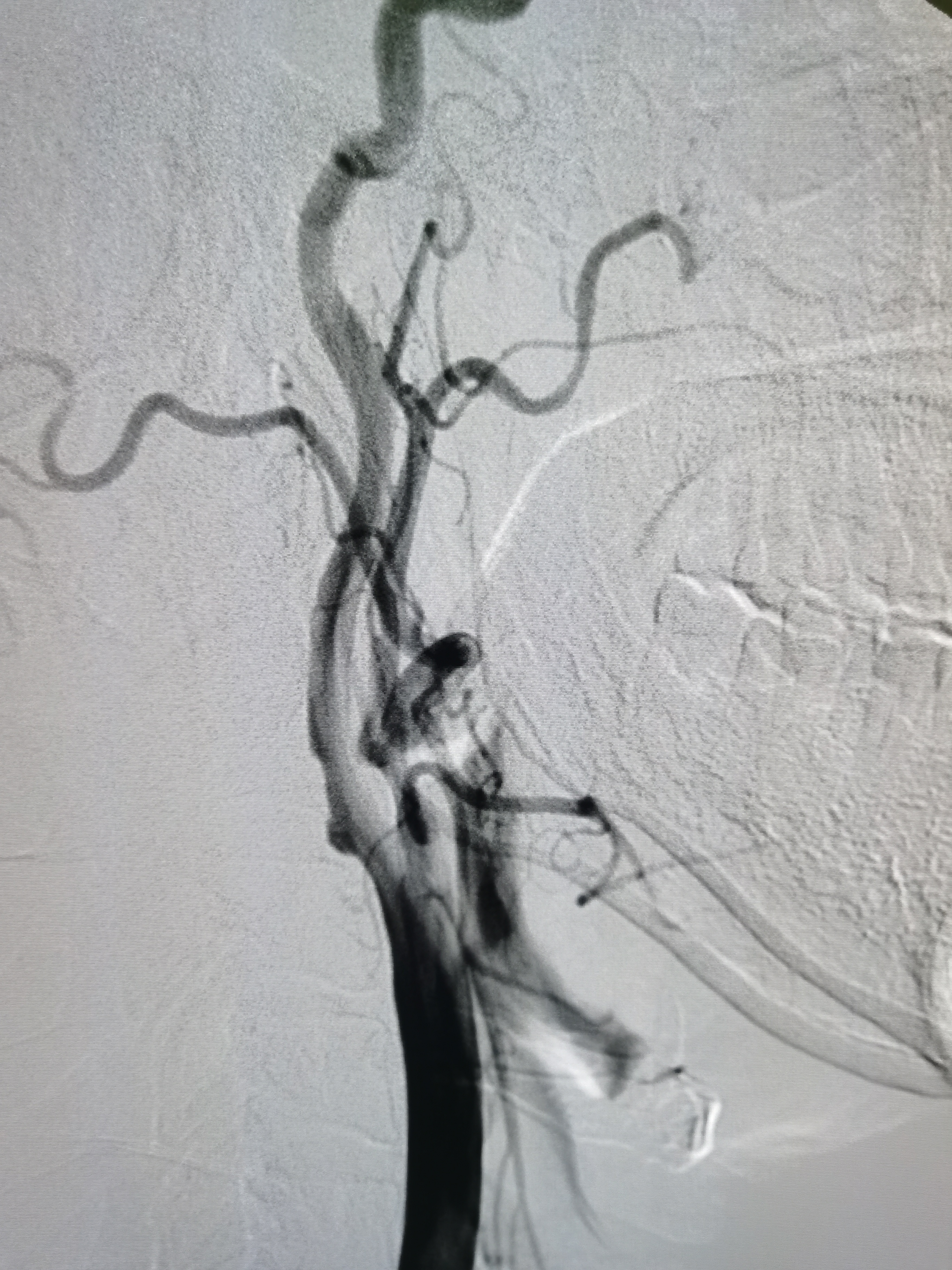 右侧颈内动脉起始部粥样硬化斑块形成。