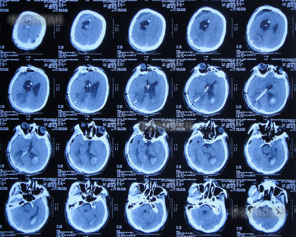 脑室外引流术后4天即2020年5月24日下午13点,患者呕吐加重,查头颅CT示出血增多(图-12)。