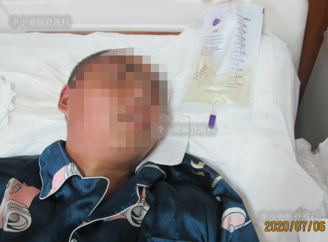 2020年7月6日(入院治疗47天),引流出的脑脊液变清亮(图-19)。