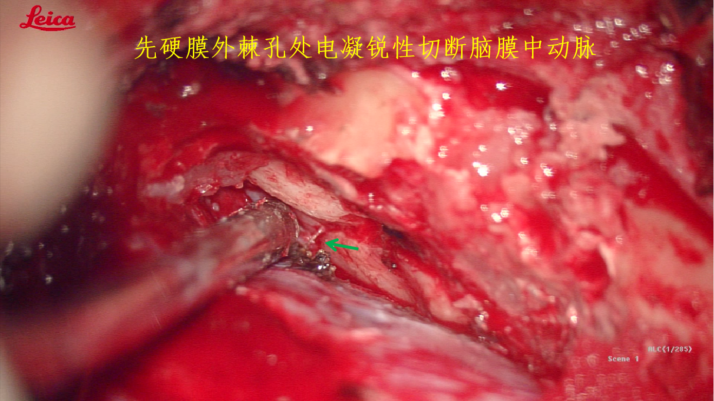硬膜内颞下岩前入路在治疗岩尖脑膜瘤的优势:首先,该入路从侧方暴露岩斜区域,兼顾中后颅窝病变,可全程暴露;其次,该入路可磨除岩骨尖,消除骨质增生对三叉神经的卡压;再者,该入路切开MECKEL囊,直视切除肿瘤,肿瘤切除更彻底,三叉神经保护更好,同时可以切除增厚的硬脑膜,减除对三叉神经的卡压;最后,该入路可暴露三叉神经根部,排查血管压迫因素,也可全程减除蛛网膜黏连,游离三叉神经。