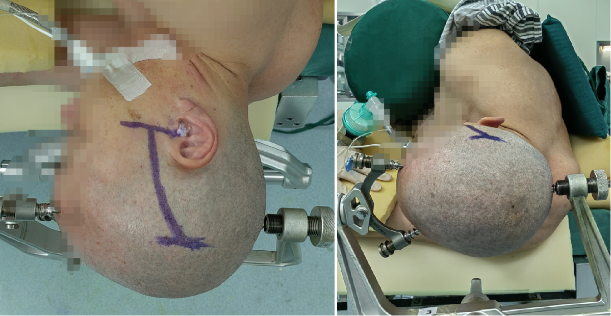 采用右侧颞下岩前入路(硬膜内)