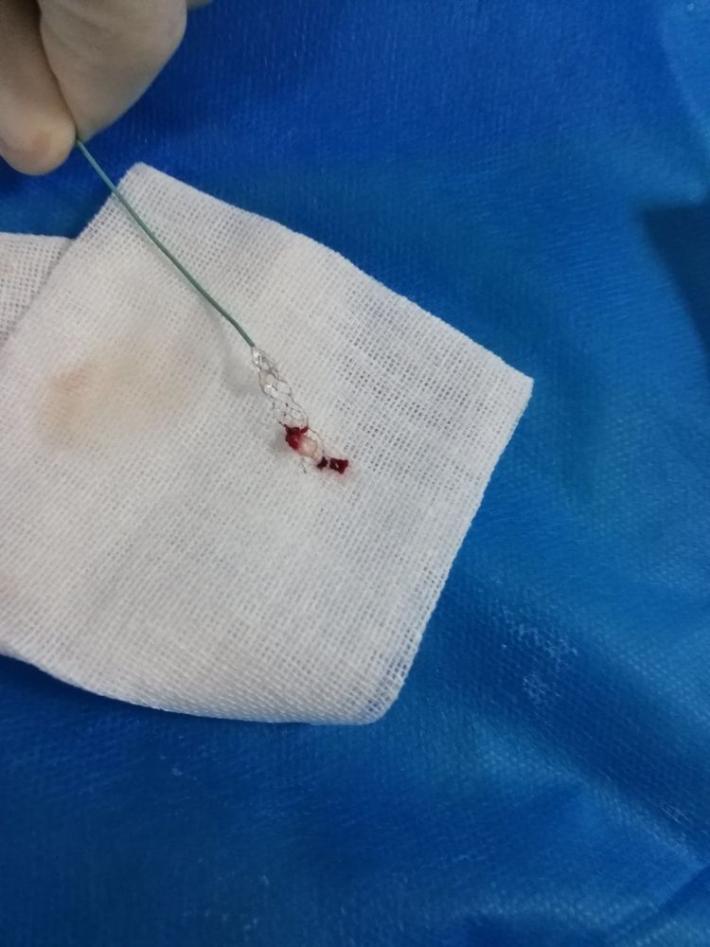 与家属详细沟通病情,家属表示理解并强烈要求手术。时间就是大脑,血管再通就是王道,立即安排急诊取栓手术治疗。