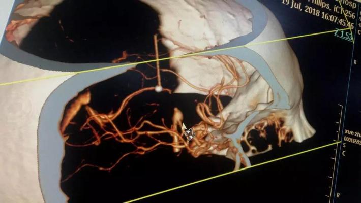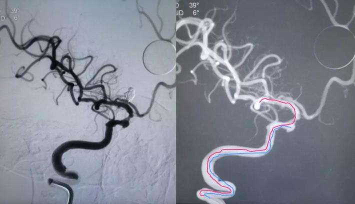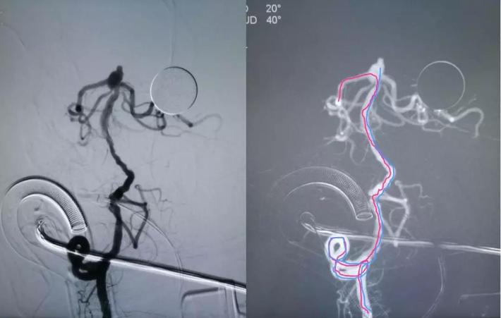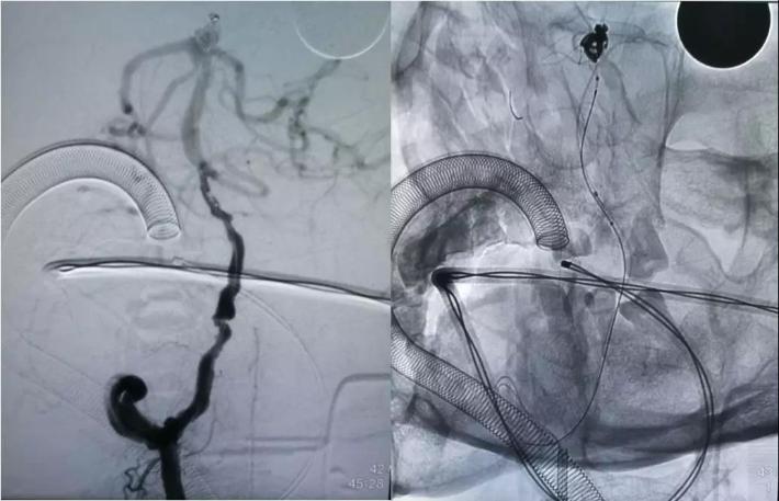 处理右侧颈内动脉虹吸段夹层动脉瘤。