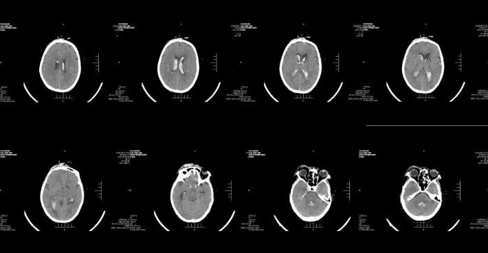 ➢现病史:患者5小时前在家中被发现跌倒在地,呼之不应,伴呕吐,当地医院头颅CT提示:1. 脑室系统积血2. 蛛网膜下腔出血3. 额部皮下血肿形成,转入我院。