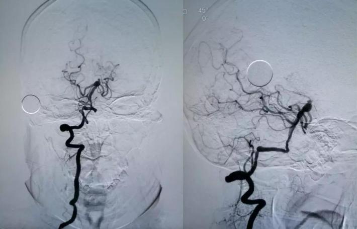 右侧颈内动脉虹吸段夹层动脉瘤,右侧大脑前动脉A1段纤细