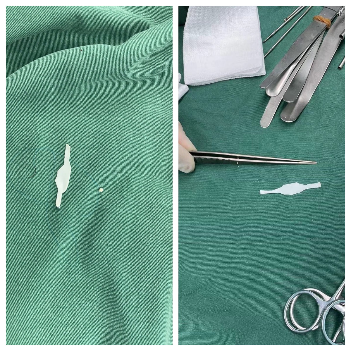 术中椎动脉粗大,此时想到“黾”字,先做“脑膜探子”一枚,普林线连结“脑膜托”,将脑膜成功环绕椎动脉,并将其悬吊在岩面硬膜,缝合固定2针。术中效果满意,回顾以往阅读文献及结合北京天坛医院所见所闻,类似病例不胜枚举,觉探子和脑膜托类似“黾(mǐn)”字,故分享。
