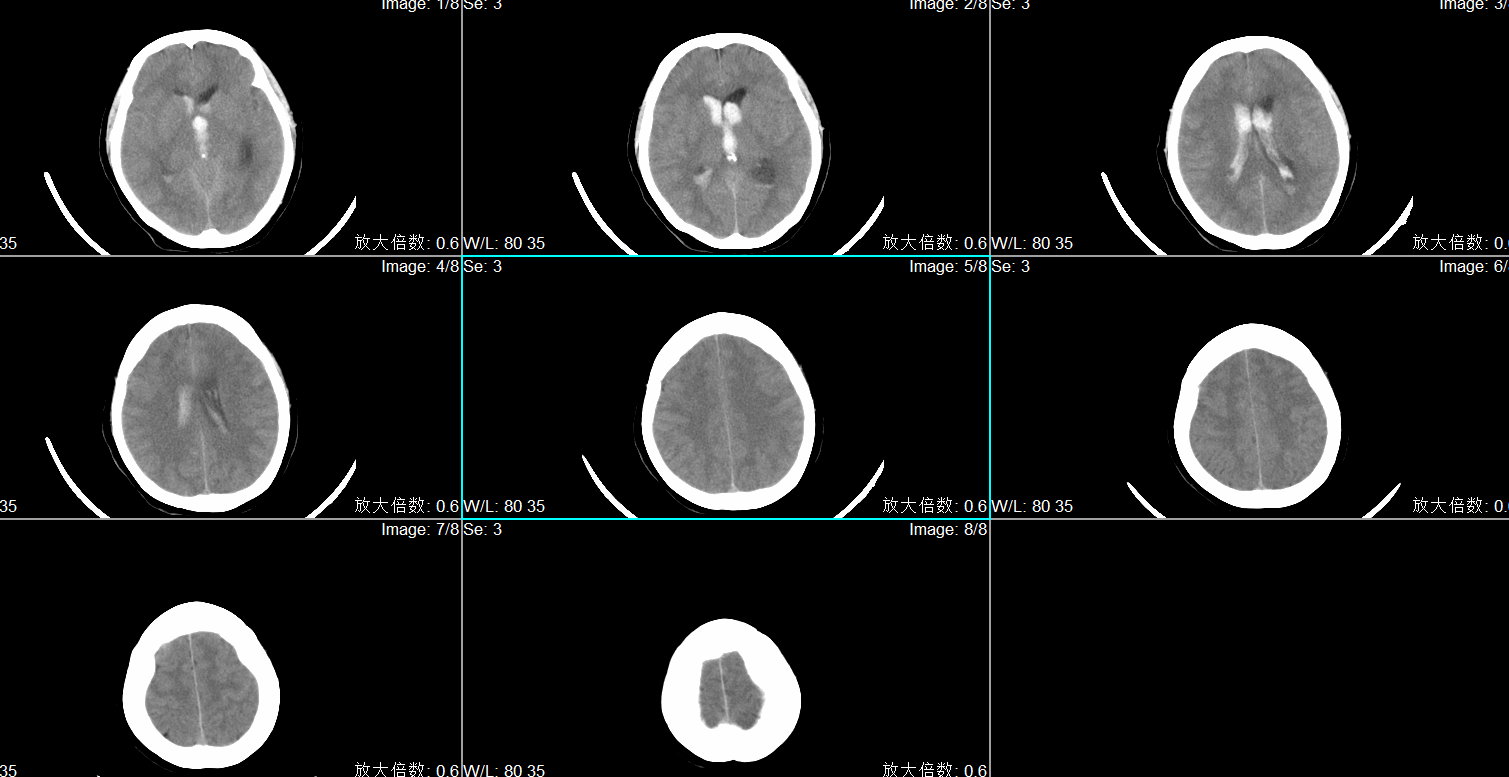 入院头CT显示小脑蚓部出血破入第四脑室、第三脑室及第四脑室。