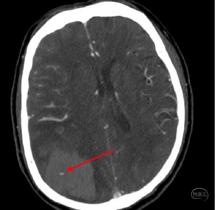 头颅CT示:右侧颞顶枕叶脑出血(78ml),内斑点、小片状持续强化灶,活动性出血?血管畸形?