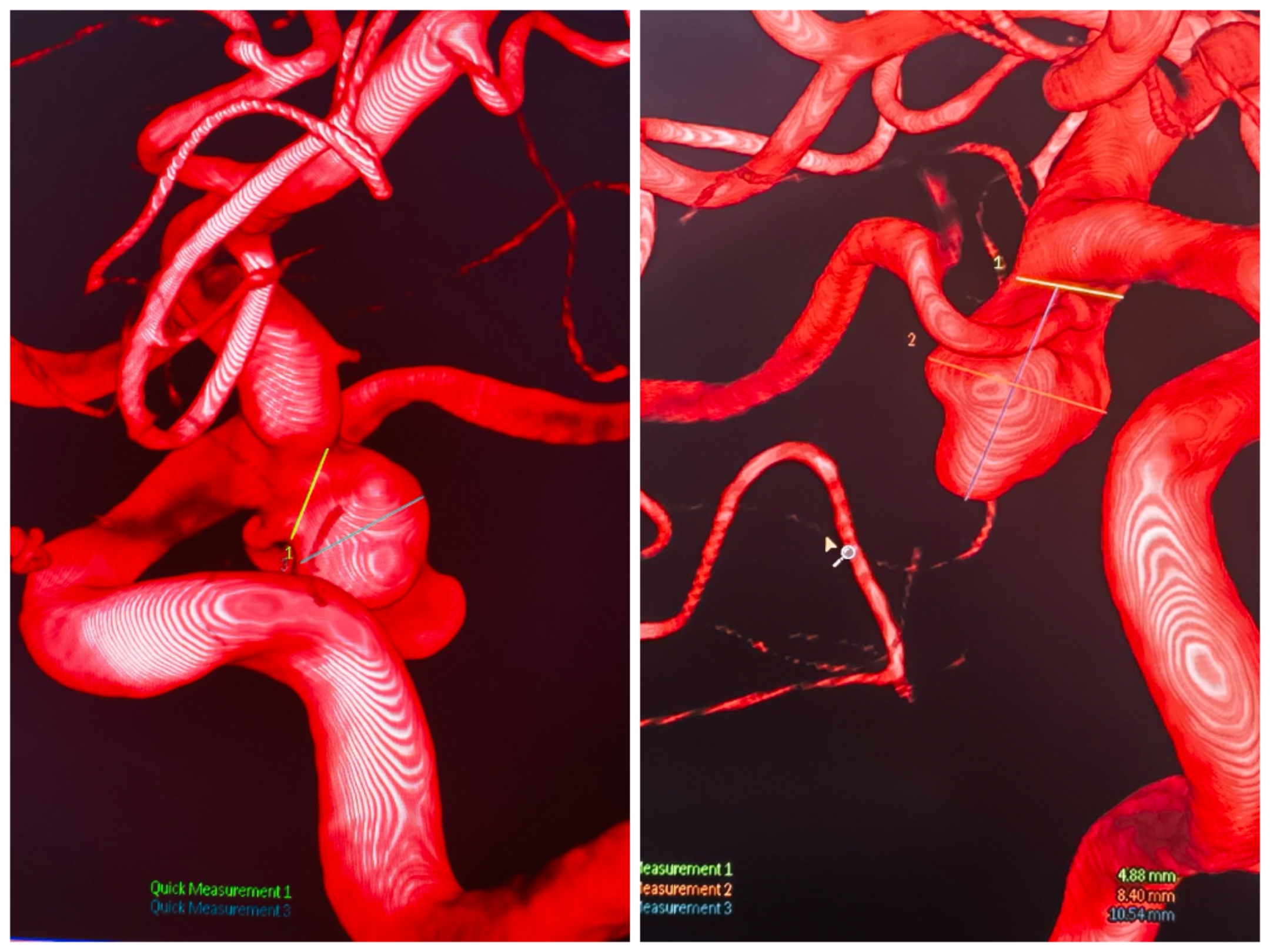 术前CTA提示:左侧后交通不规则动脉瘤