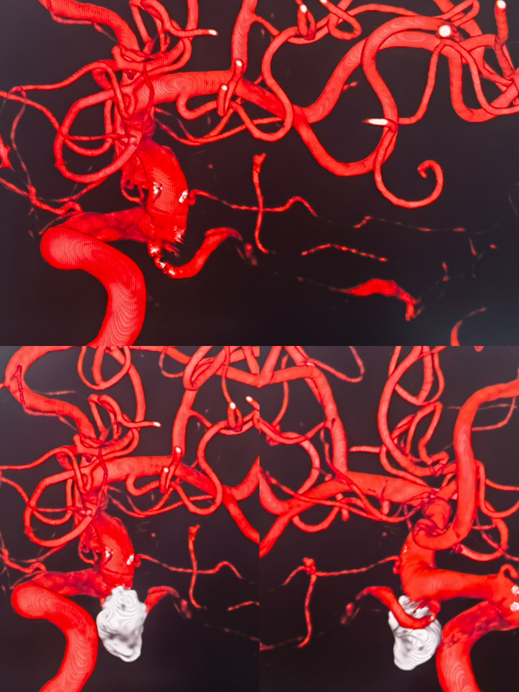 3D重建提示不规则后交通动脉瘤,多发子囊,细小后交通自瘤颈口发出