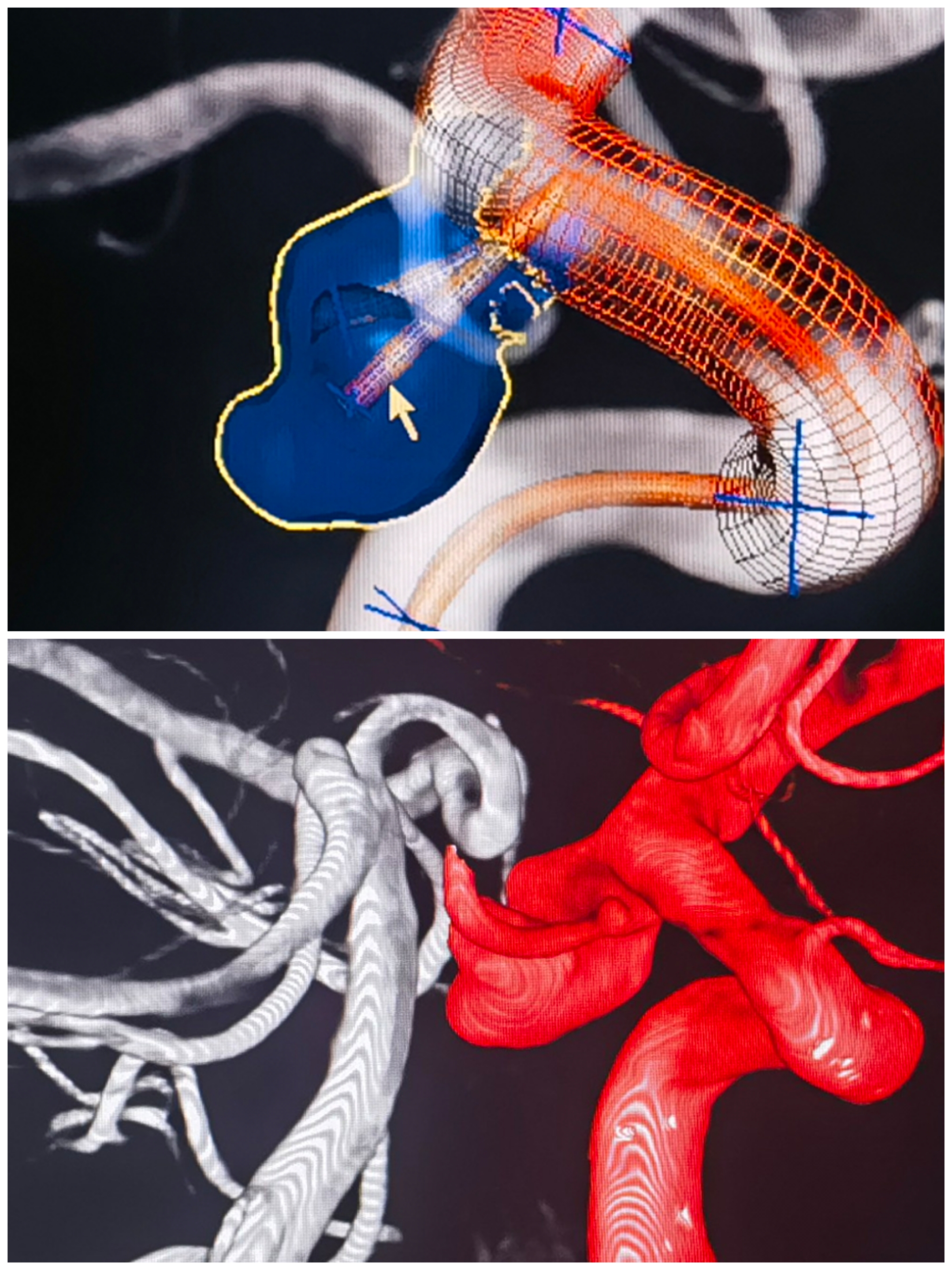 术前计划:拟支架辅助+双微管栓塞。