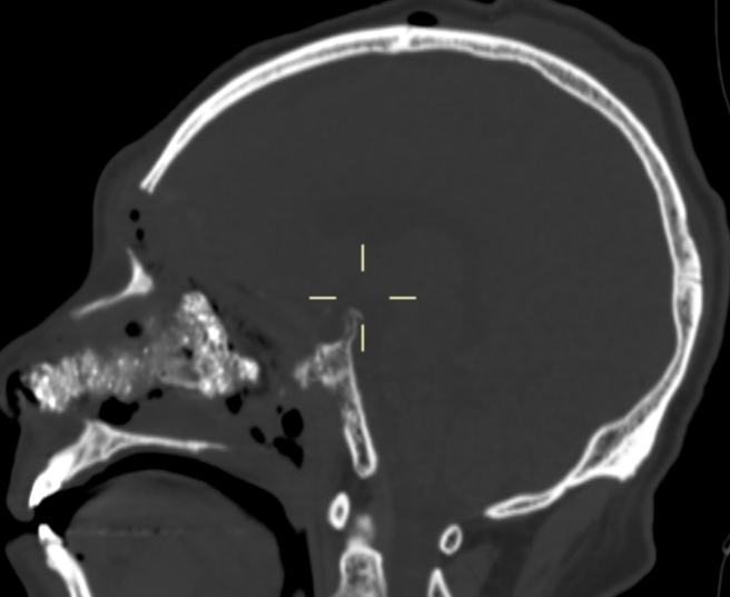 患者中年,男性,4年前活检后确诊鼻咽癌,予放射治疗。因肝转移行多西他赛+奈达铂联合化疗治疗、PD-1单抗联合白蛋白紫杉醇+顺铂方案治疗。3月前出现鼻腔流液。病程中有间断性头痛,无头晕、恶心呕吐,感觉异常等不适。体检:鼻腔有清亮液体流出,NS(-)。