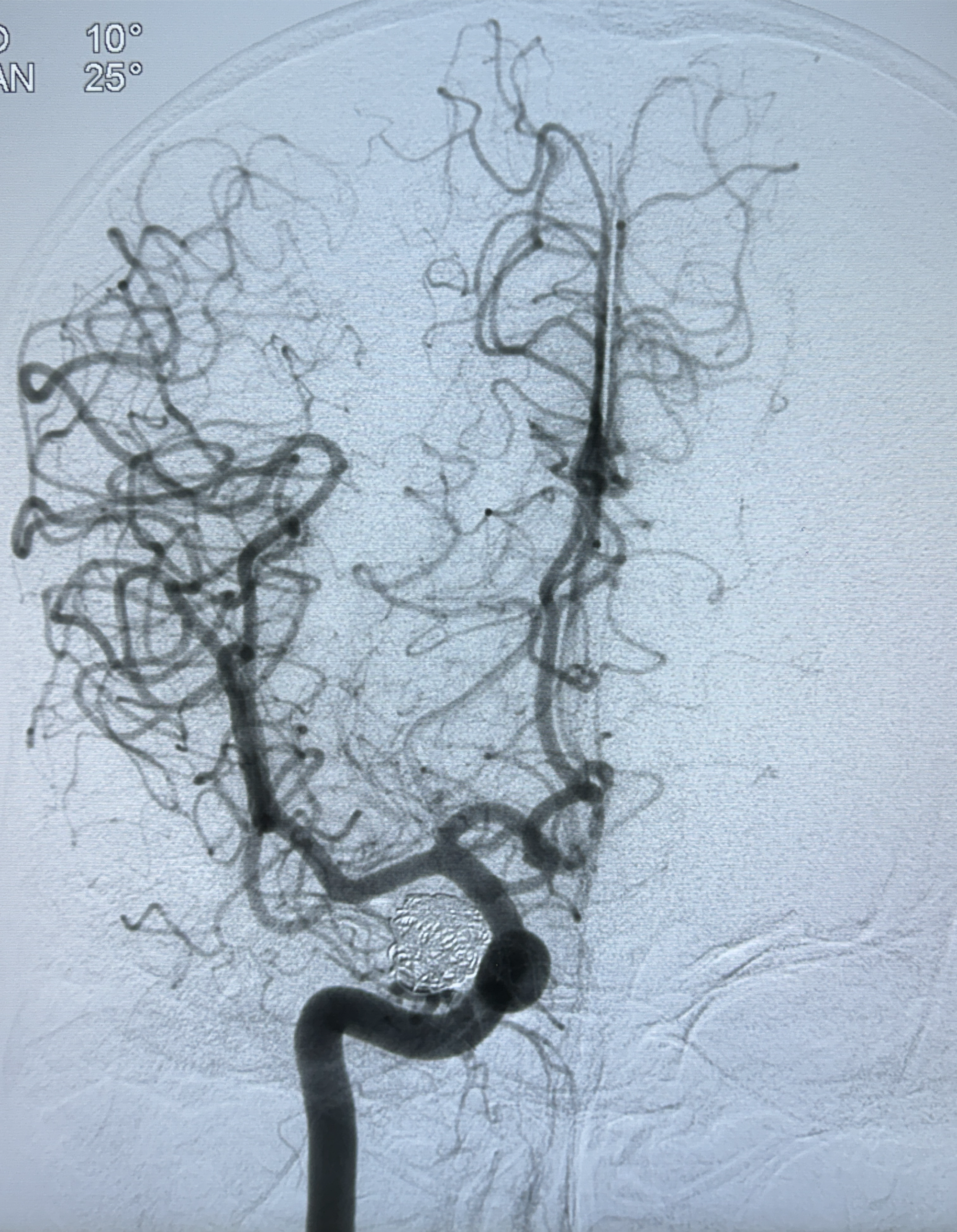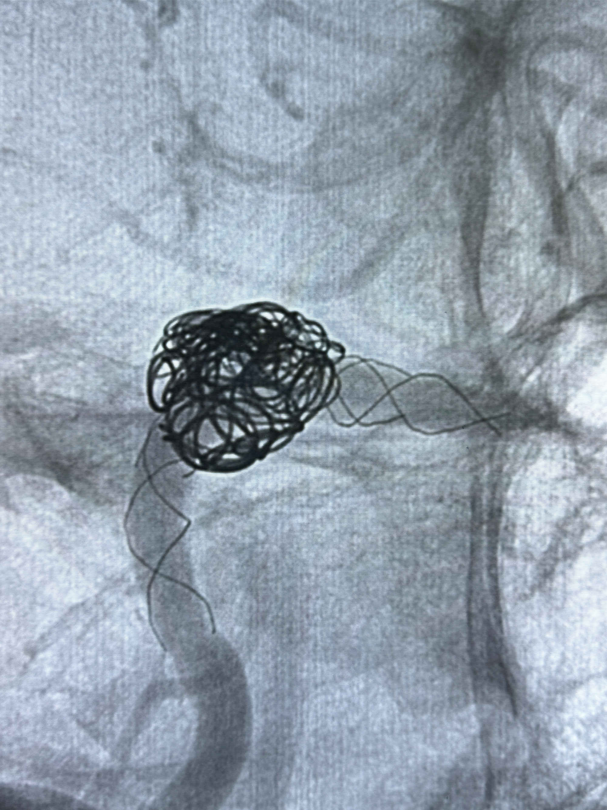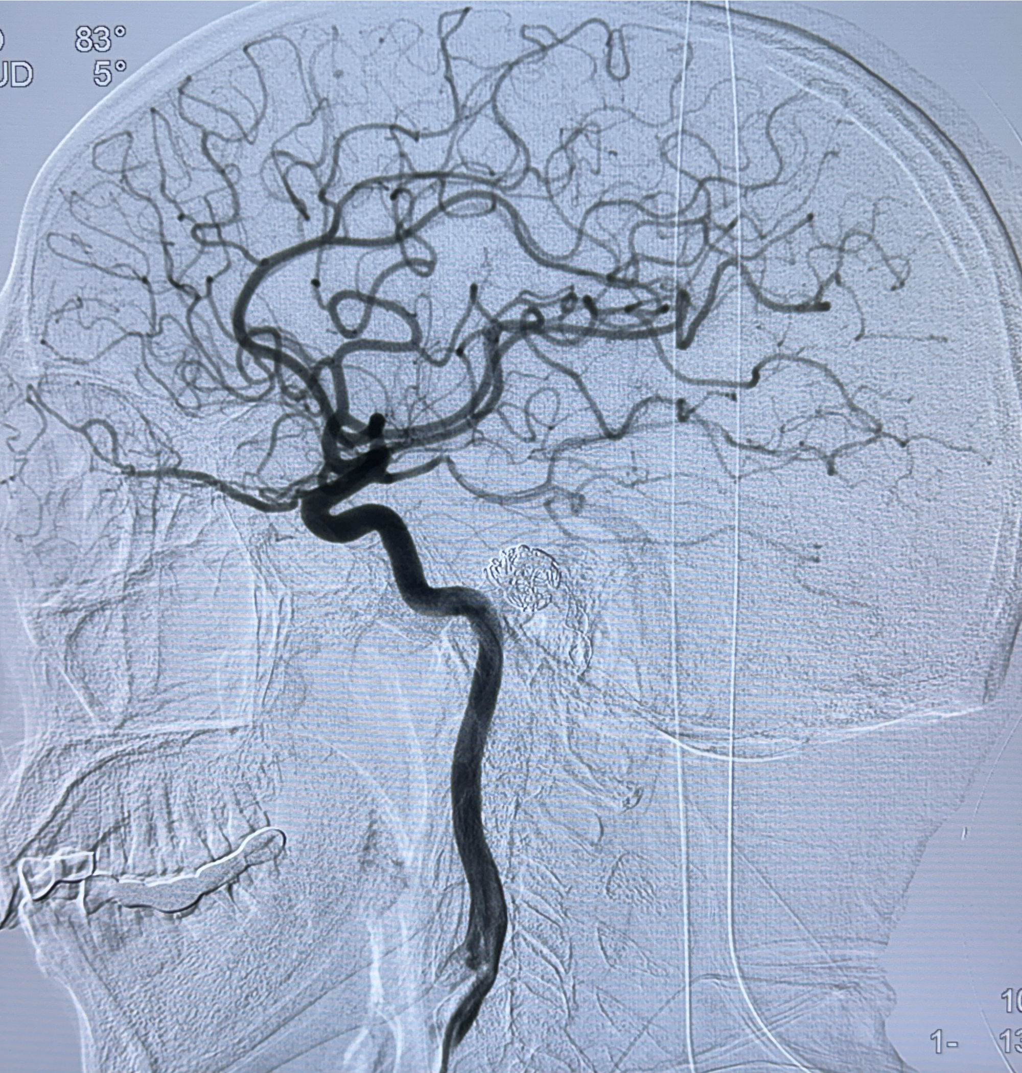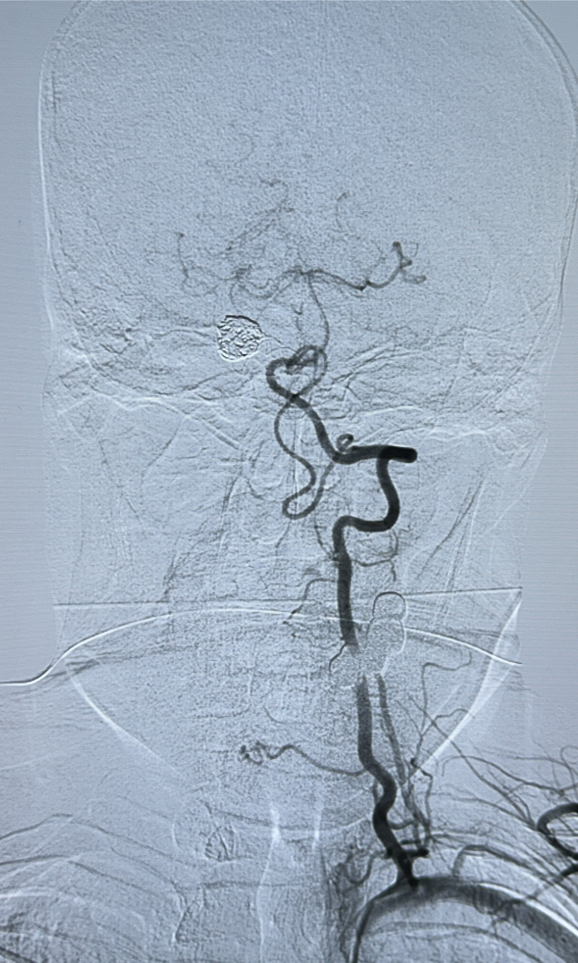 2024-01-08DSA:右侧椎动脉V4段夹层动脉瘤双支架辅助弹簧圈栓塞术后