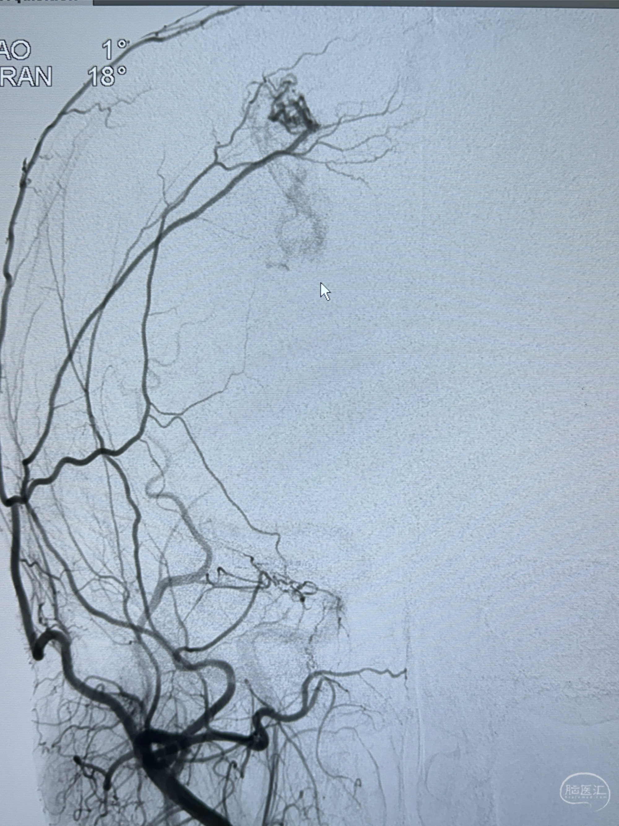 初步诊断:1.右侧顶叶大脑血管动静脉畸形
