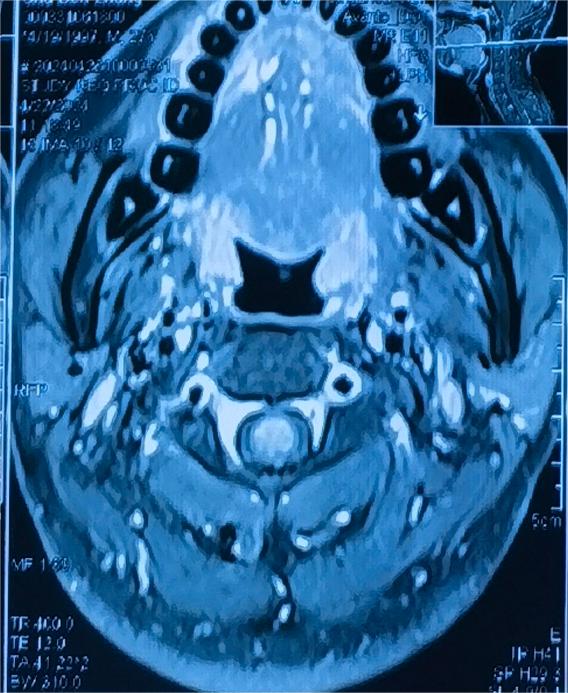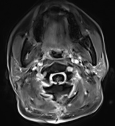 入院查头颈部MR提示C1到C2髓内占位,脊髓肿胀明显