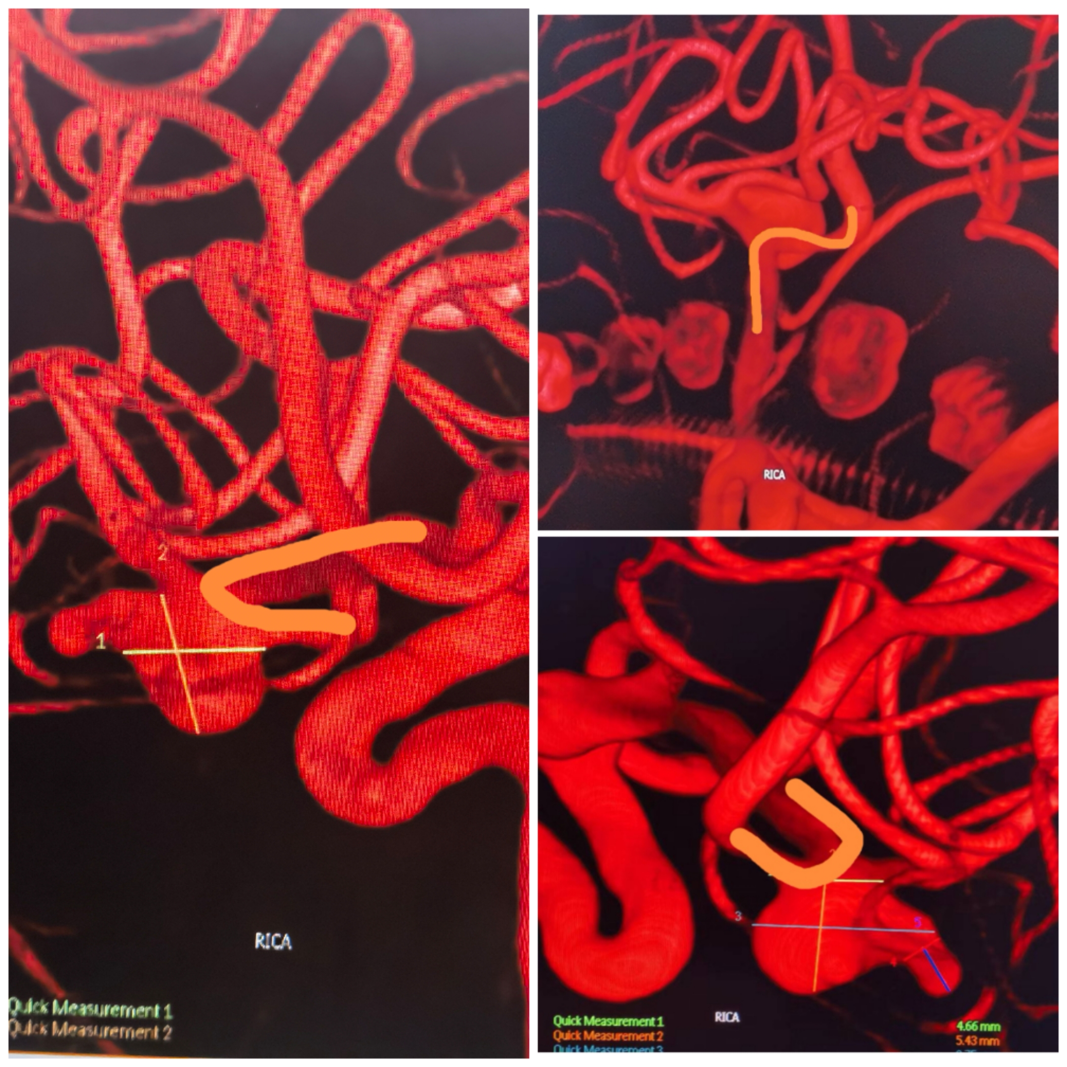 CTA提示不规则分叉部、多分叶、动脉瘤,瘤颈波及上干为主