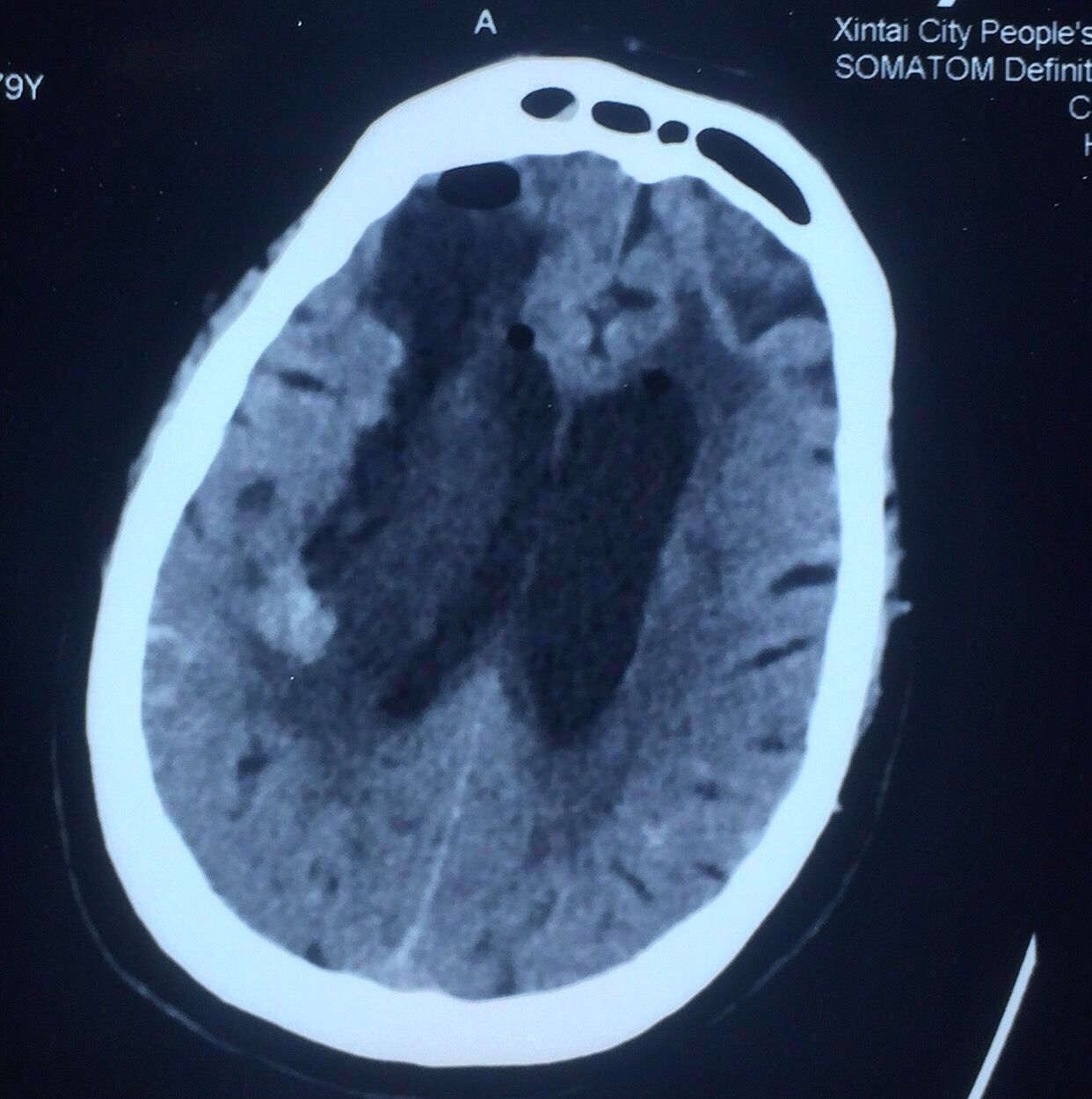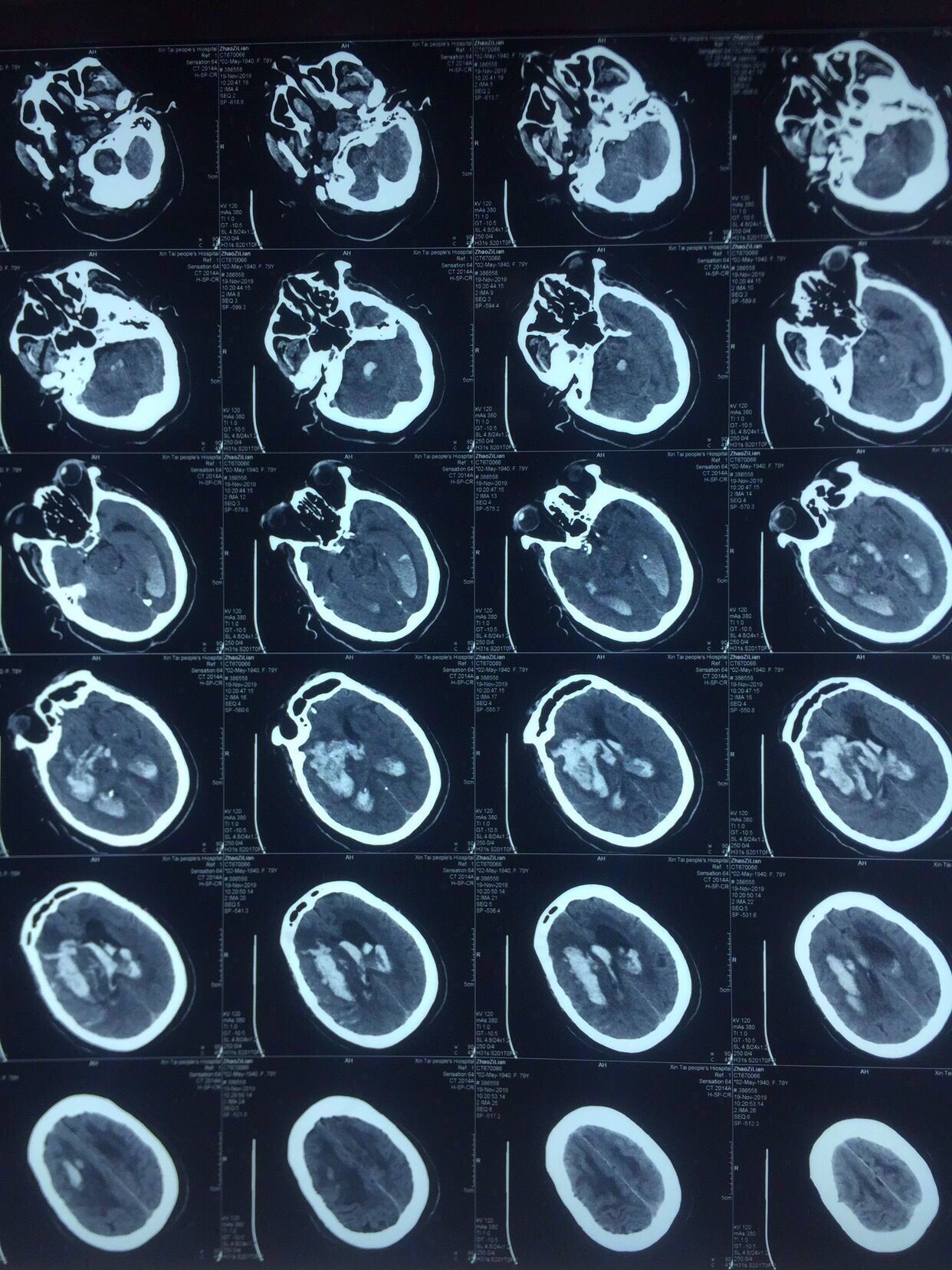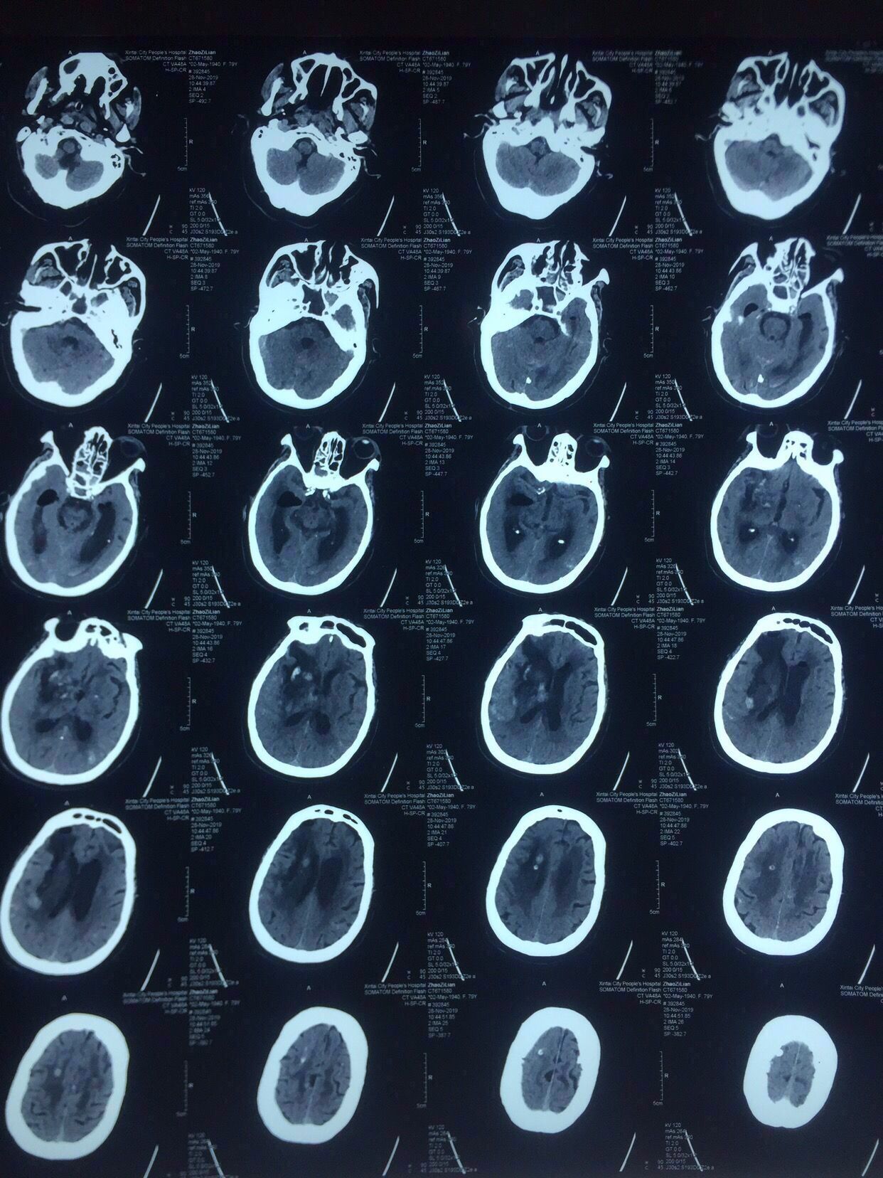 病史:女性,79岁,高血压冠心病20年,1年前脑梗死病史并脑动脉硬化、多发腔隙性脑梗死软化灶。