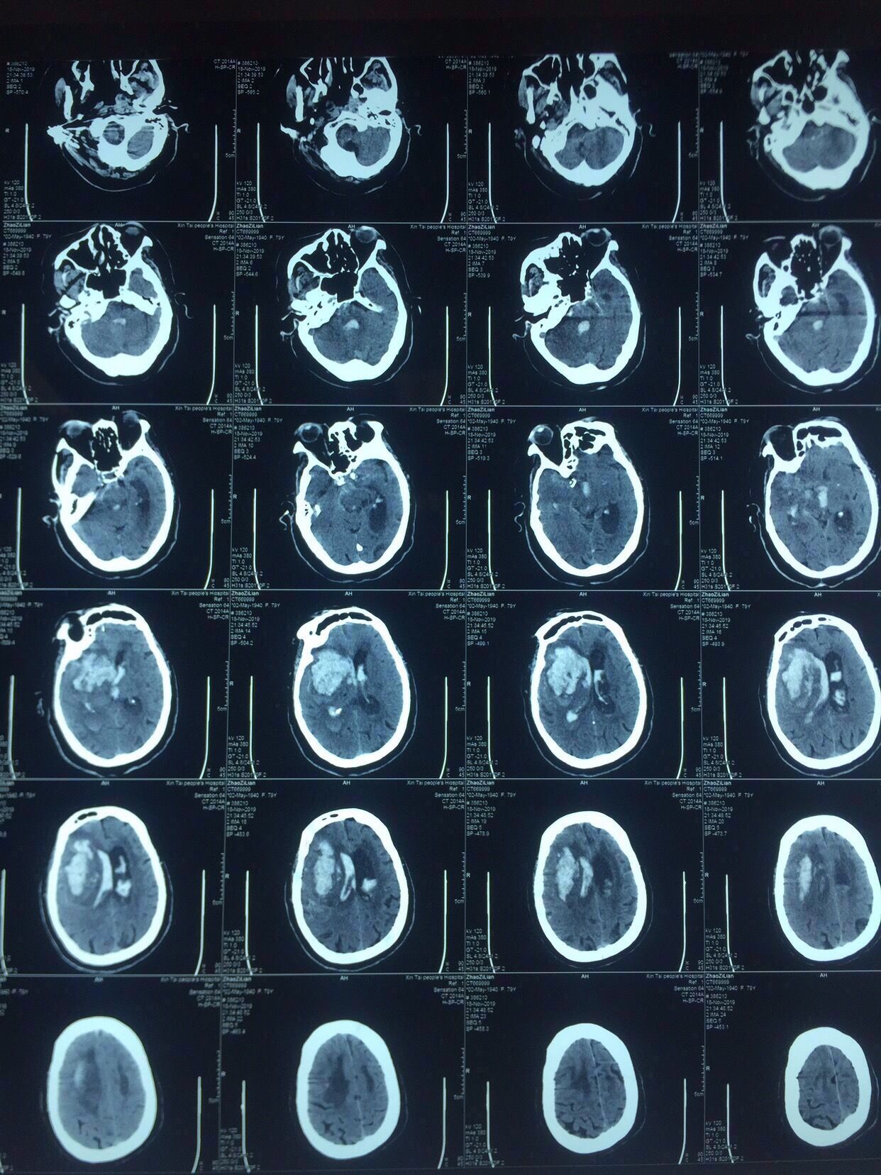 呼吸机脱机困难,术后带管CT未能复查,4次尿激酶辅助,4天血肿腔拔管,5天脑室拔管。