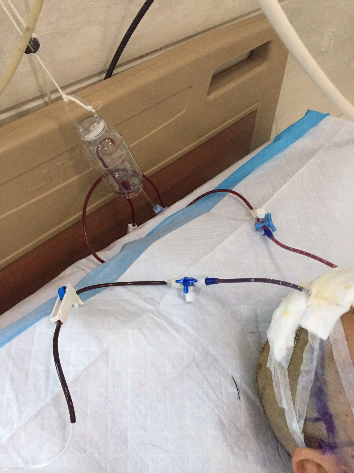 病人仍昏迷状态,已气管插管,血氧差,呼吸机辅助呼吸。