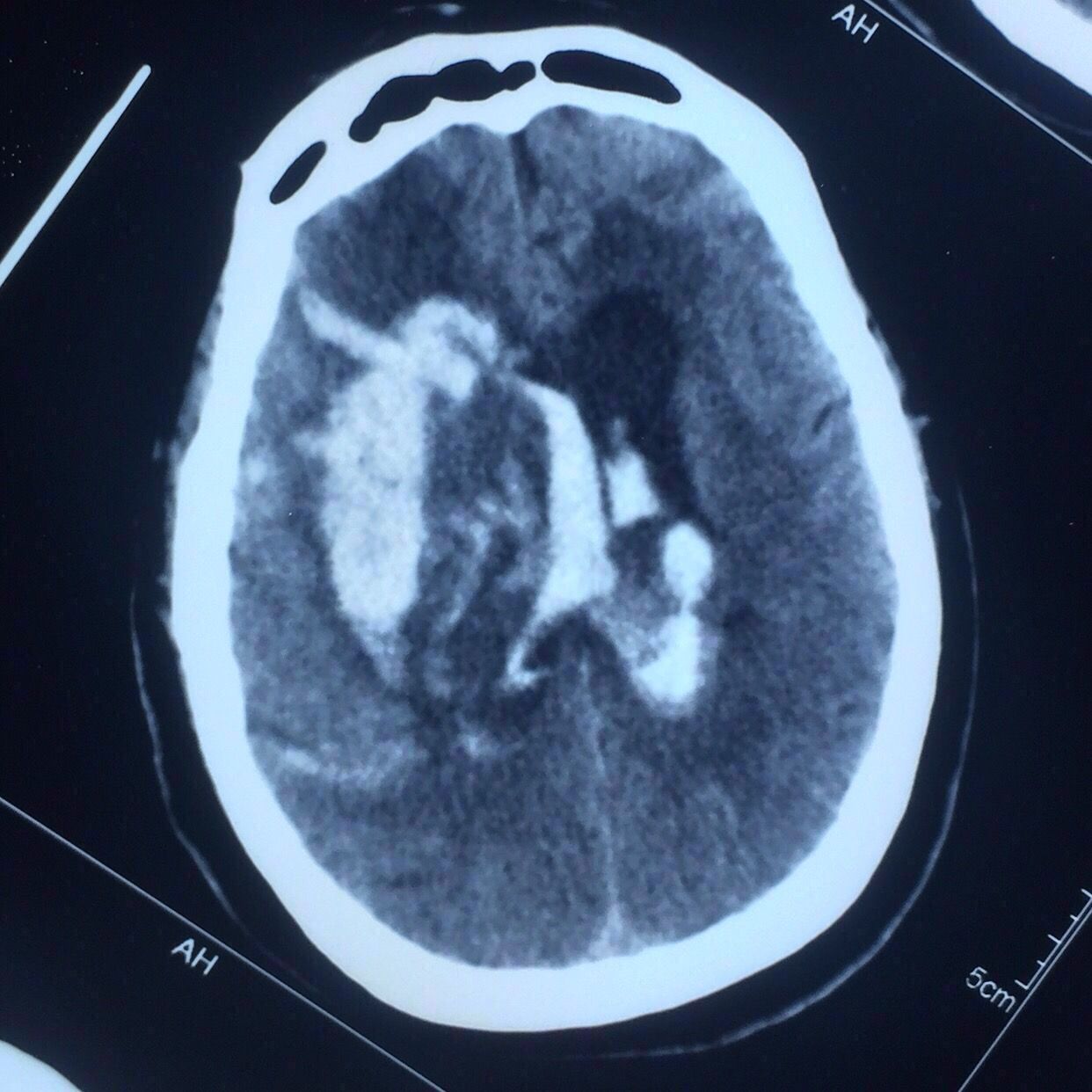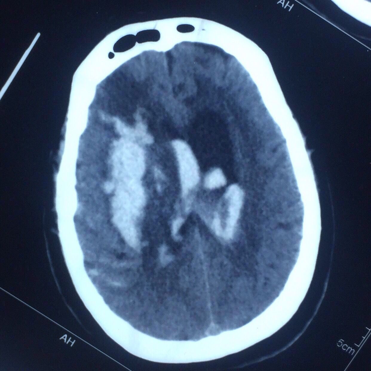 右侧基底节出血破入脑室脑积水