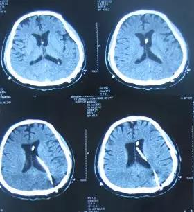 但第2次左侧脑室腹腔分流术后第3天即2011年9月3日,患者病情再次加重,失语及肢体不能活动。复查头部CT脑室再次扩张(片子丢失),医生无奈只能给予保守治疗。