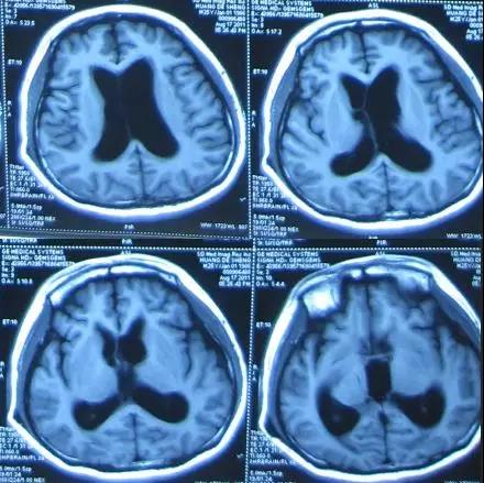 又经过一个月即2011年8月17日,患者出现语言及行动迟缓病情加重的症状,遂就诊于山东省济南市某三甲医院,头部MRI示脑积水(图-3)。