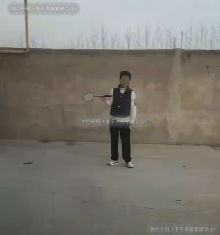 出院后1年零2月即2023年12月,出院时遗留的脑外伤出血左侧肢体活动差进一步好转,能打羽毛球了,生活完全自理(图-32)。