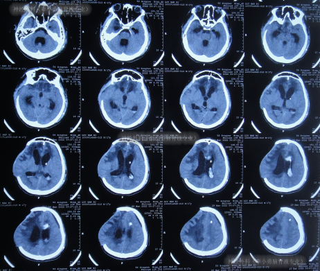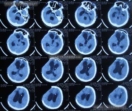 患者于2022年2月2日,不慎摔倒头部磕到地面,当时呈嗜睡状态,呕吐1次,大小便失禁,由120急送至当地县某医院,查头颅CT示右额部血肿(片子丢失),当即转至上级的河北省唐山市某医院,查头颅CT示右额部血肿、脑疝(图-1);检查期间出现昏迷、呕吐、四肢强直。
