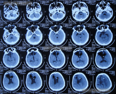 继续治疗1月期间出现数次呕吐,行胃肠镜检查未见异常(片子丢失),给予胃管及肠管置管,期间5次查头颅CT(图-5)均示脑室逐渐出现扩张,并加重。
