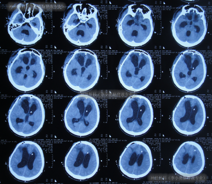 入院时头颅CT示颅骨修补术后,脑分流术后仍脑积水(图-17)。