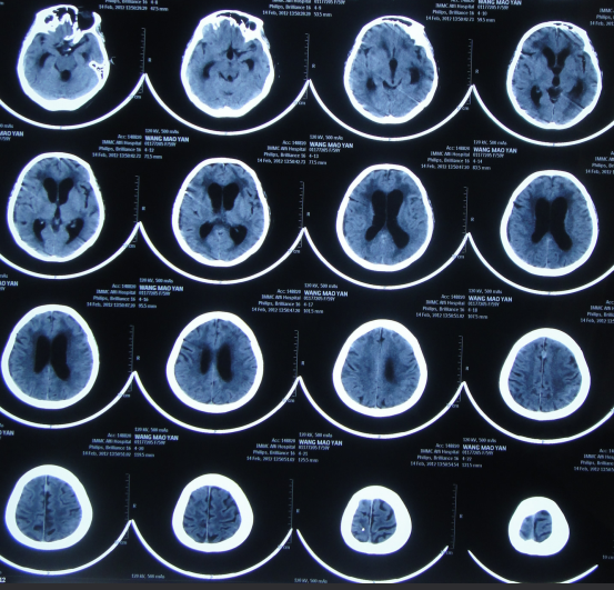 出院后近12年即2024年7月,来院复查:虽走路仍需搀扶但身体挺好,饮食正常,言语交流正常,经常与亲朋打牌,头颅CT示无异常(图-26)。