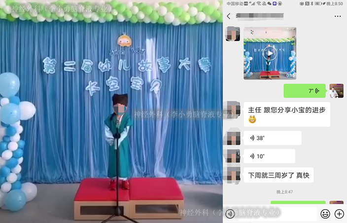 出院后2年即2020年12月,家属发来视频,马上3周岁了,孩子聪明伶俐,能背诵很多首诗(图-13)。