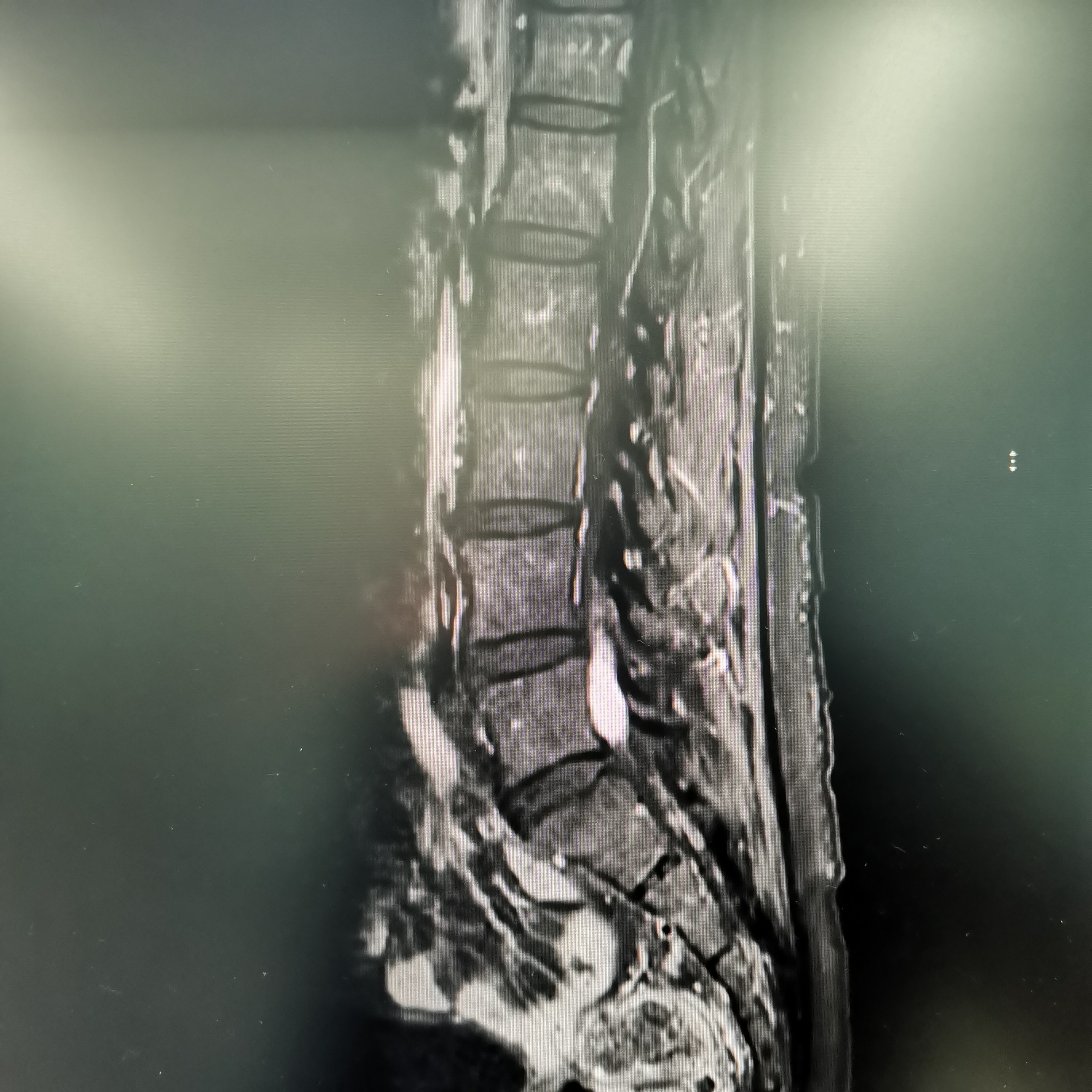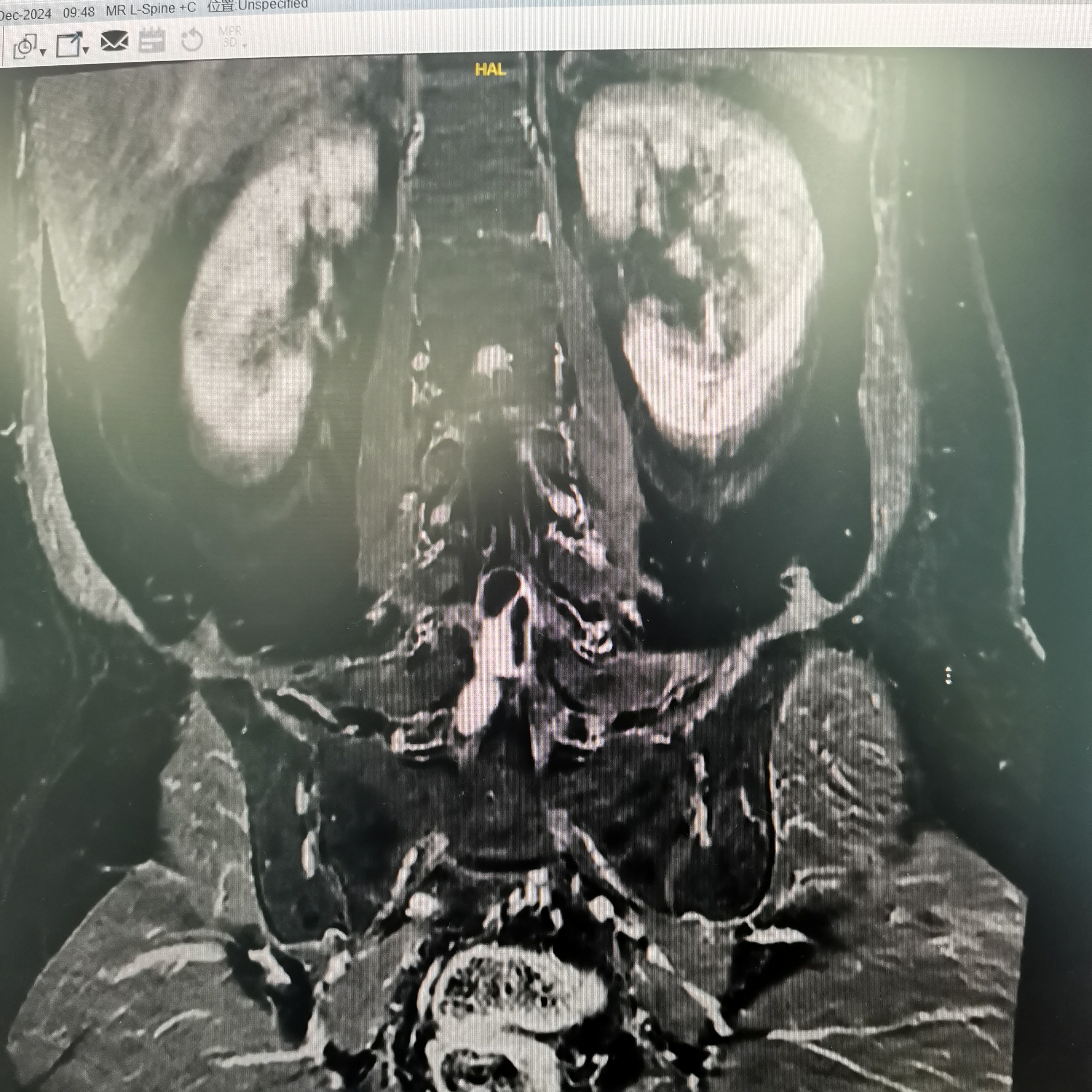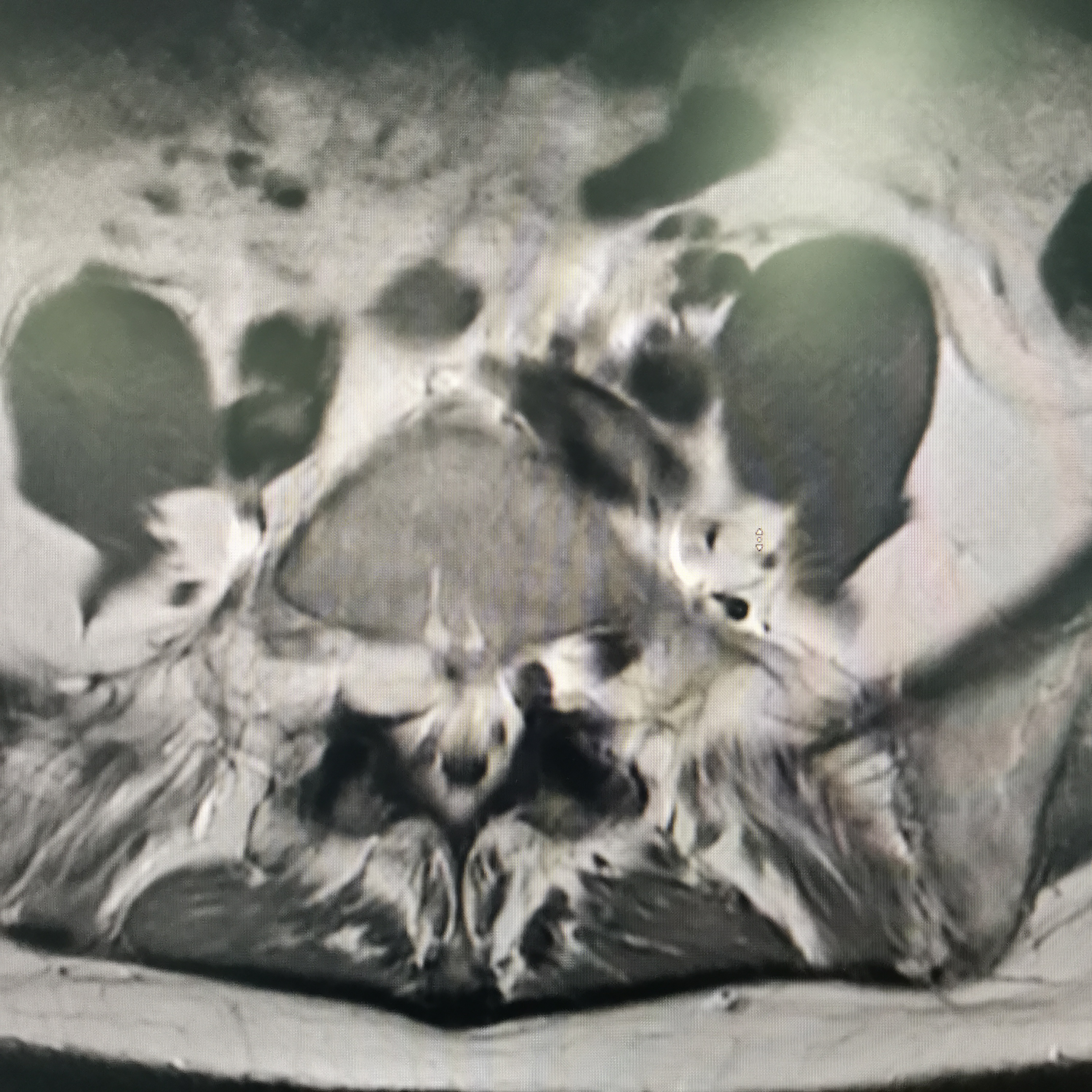 膝关节疼痛,原因是椎管内肿瘤,哑铃型生长,全切肿瘤,保留神经,疼痛症状消失…