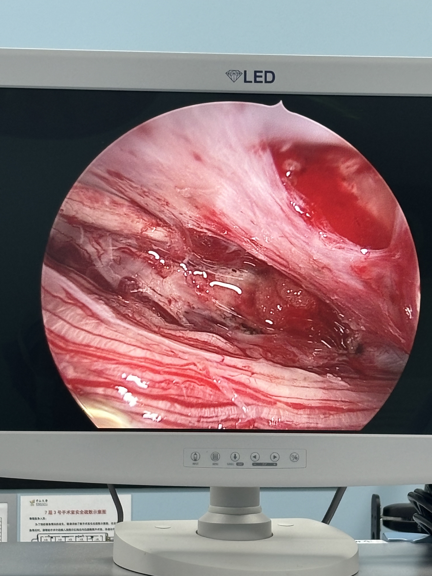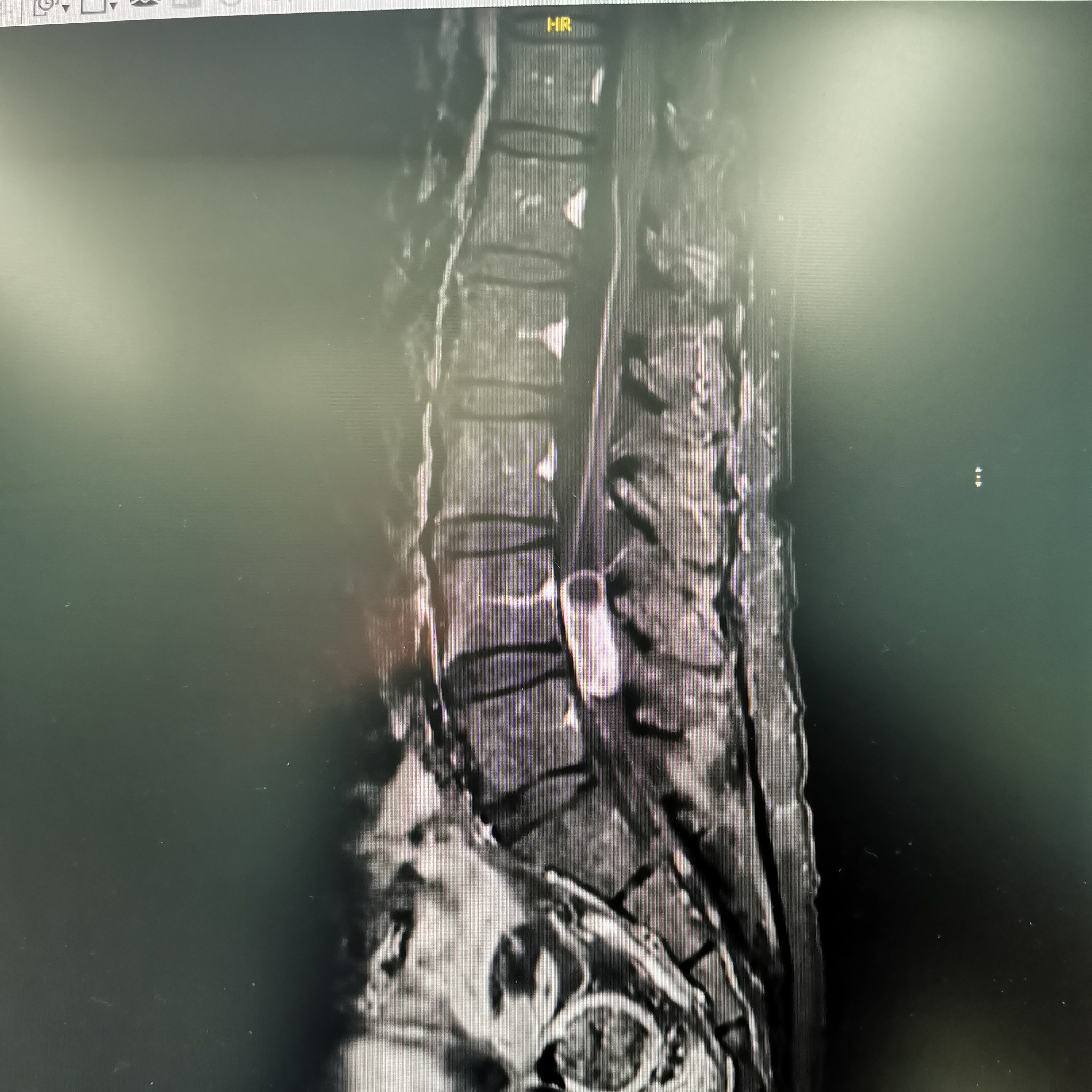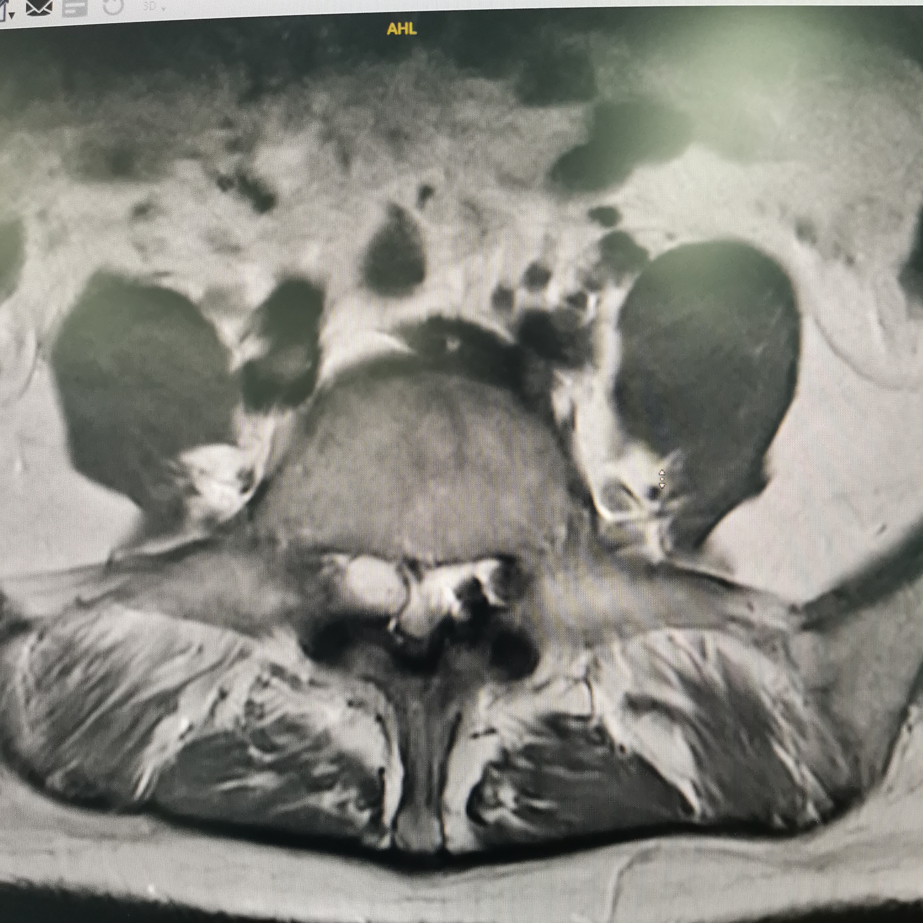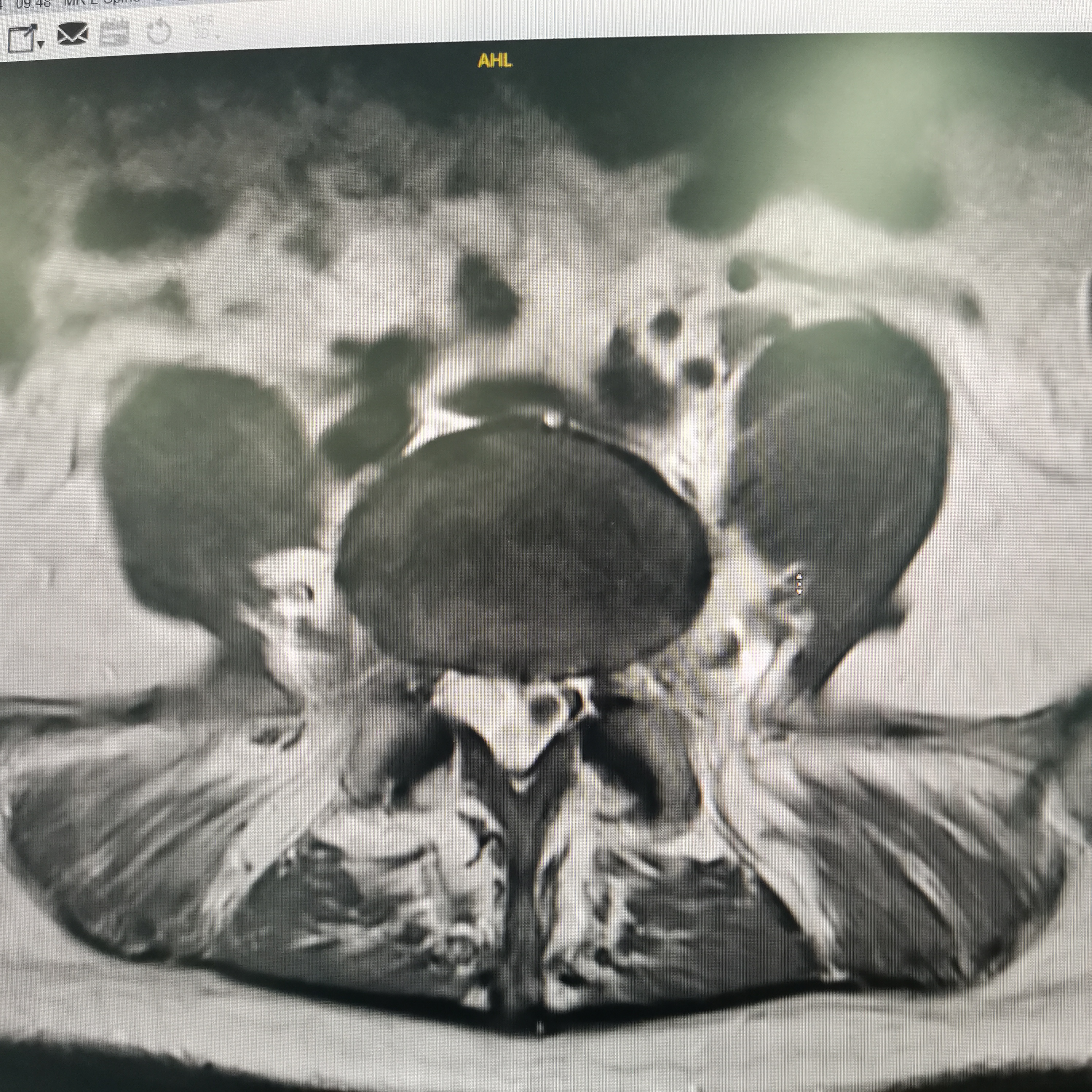 膝关节疼痛,原因是椎管内肿瘤,哑铃型生长,全切肿瘤,保留神经,疼痛症状消失…