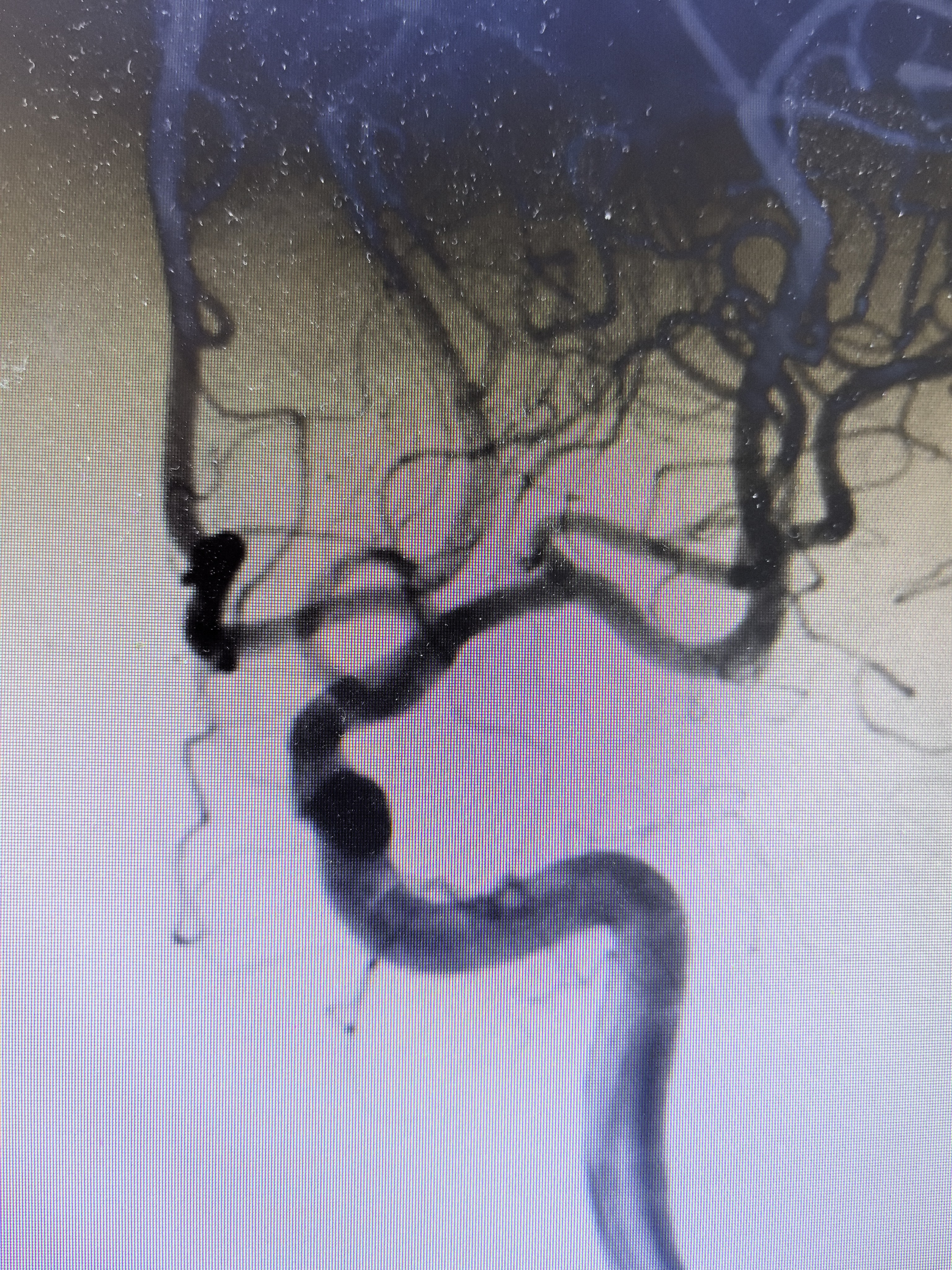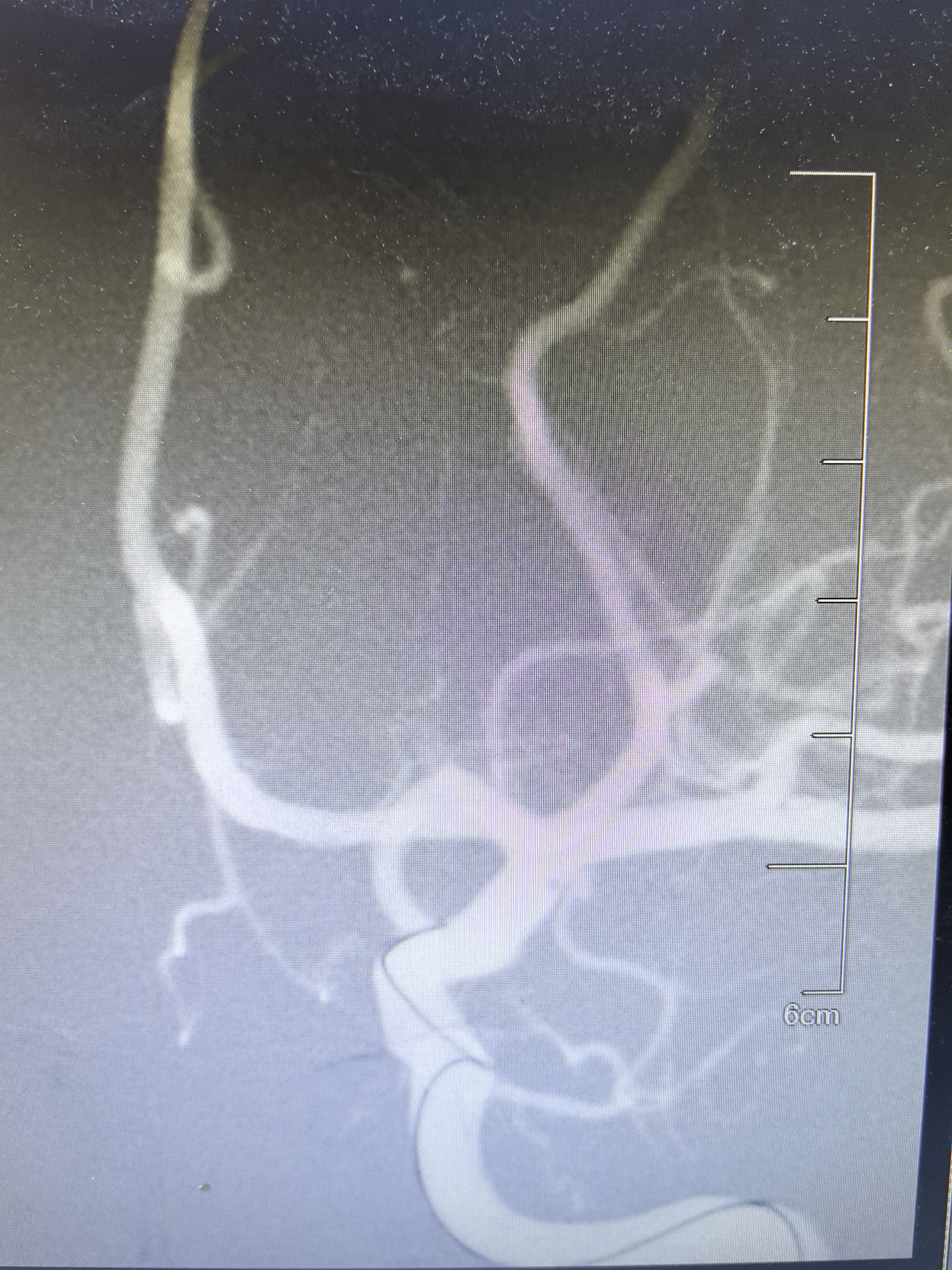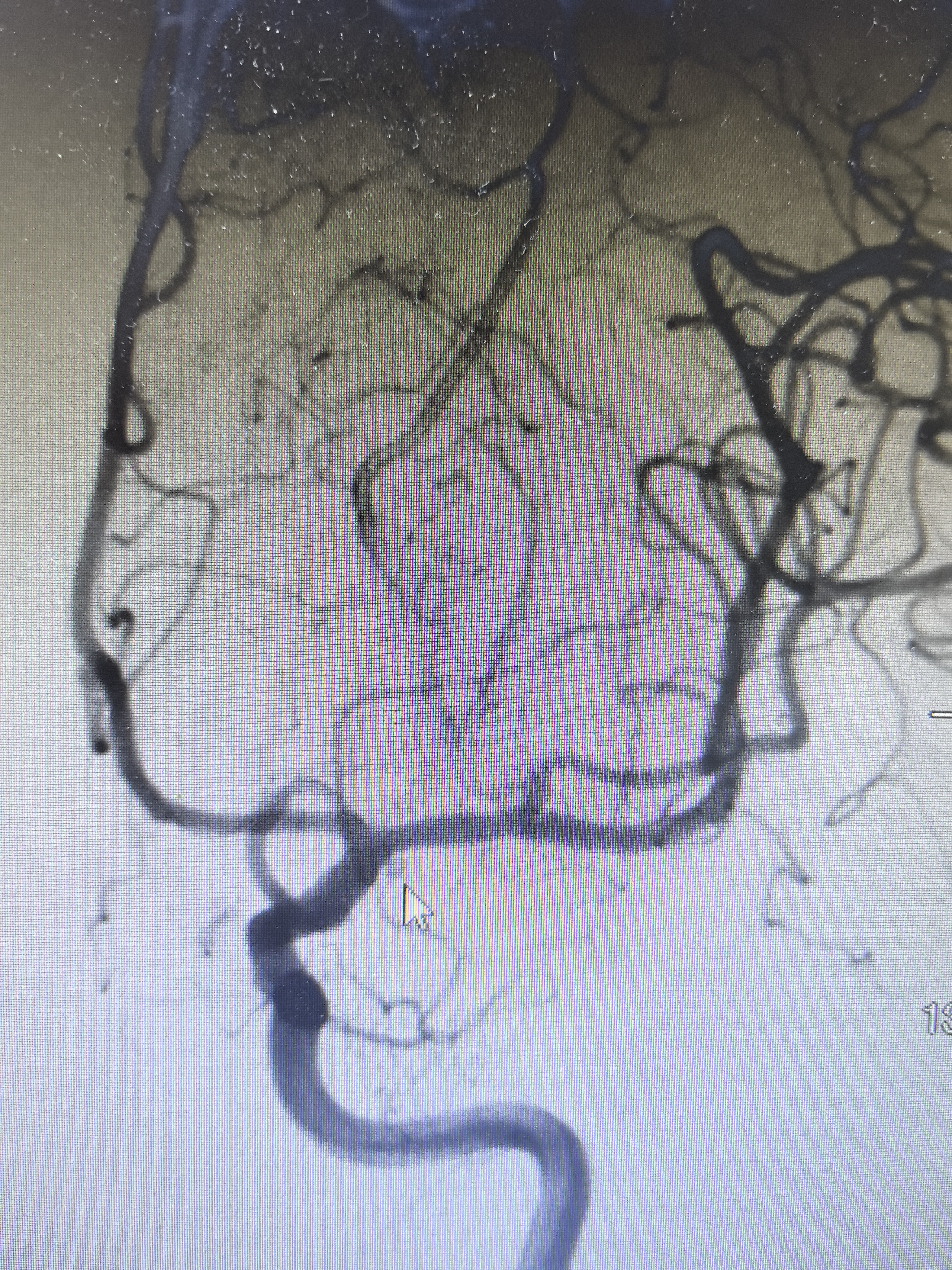 DSA显示左侧变异颞前早期分支起始部微小动脉瘤